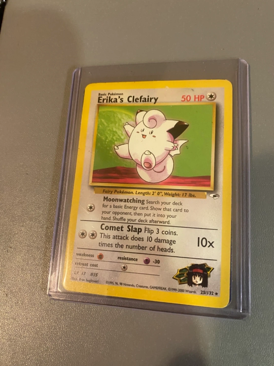 Selling an Erika's Clefairy Pokémon card. It's in lightly played condition and comes in a protective case. A nice addition to any collection!
