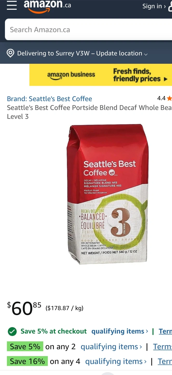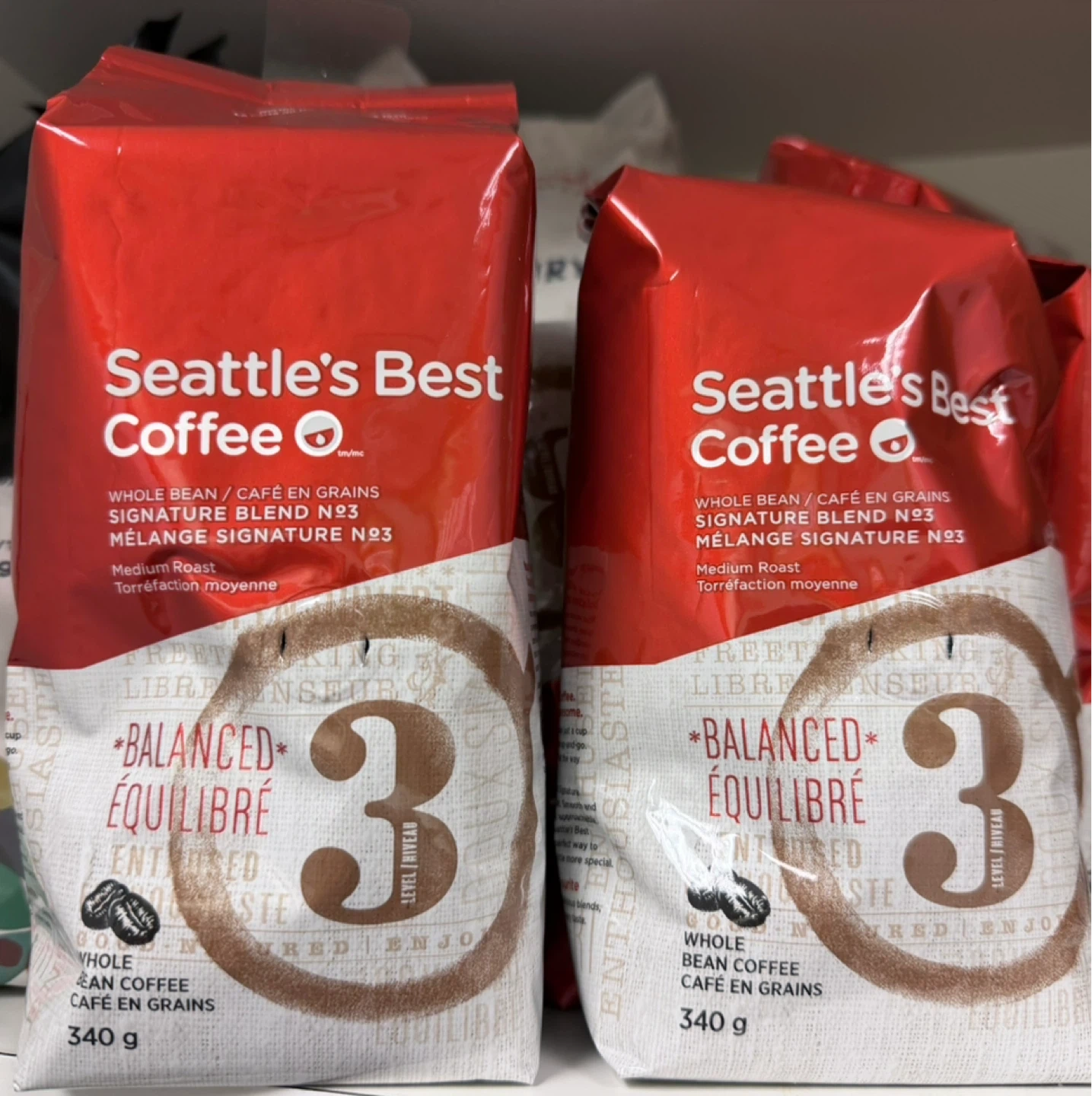 Selling unopened Seattle's Best Coffee Signature Blend No.3. It's a medium roast whole bean coffee. Each bag contains 340g of coffee. This balanced coffee is perfect for everyday enjoyment.