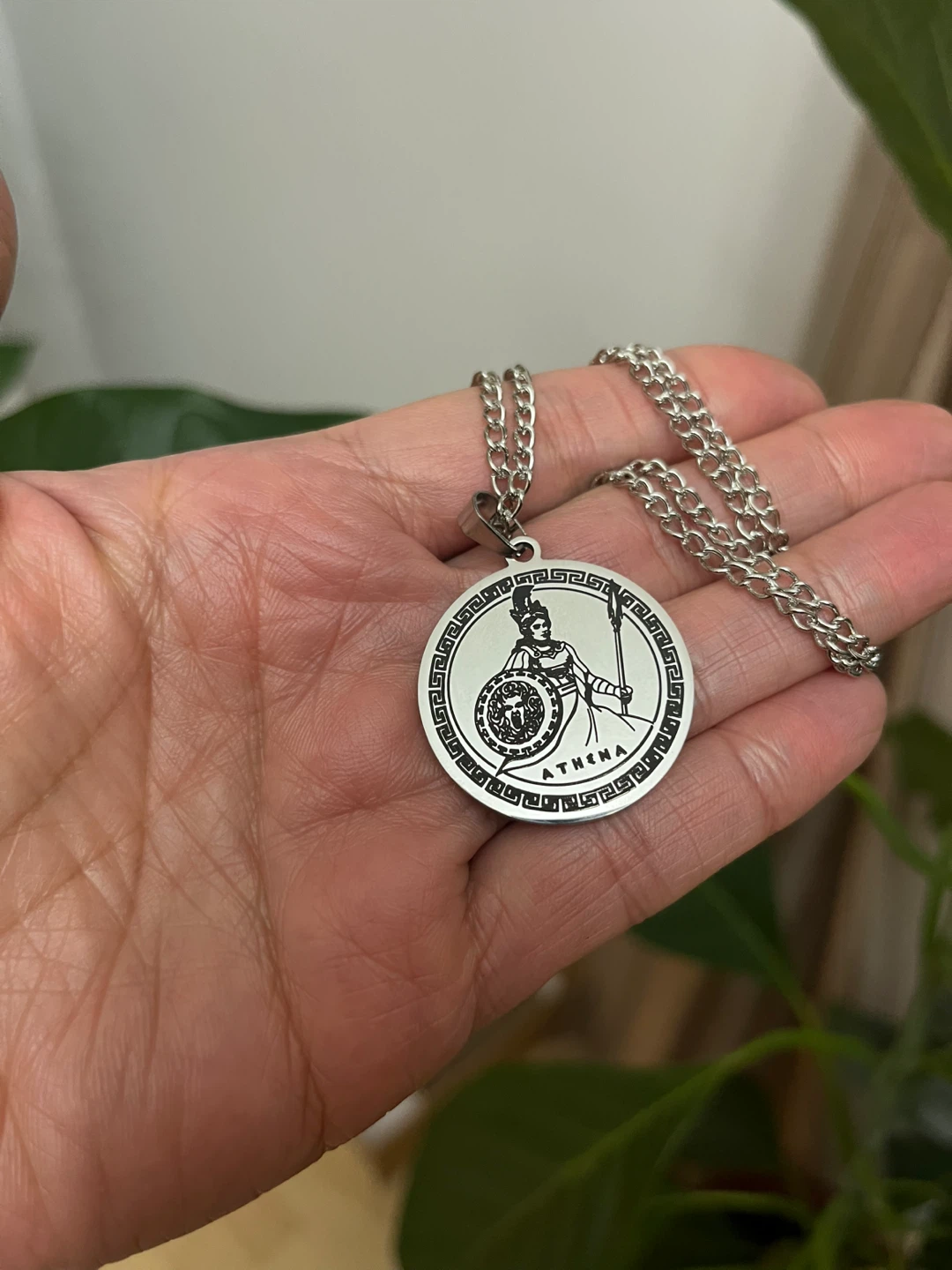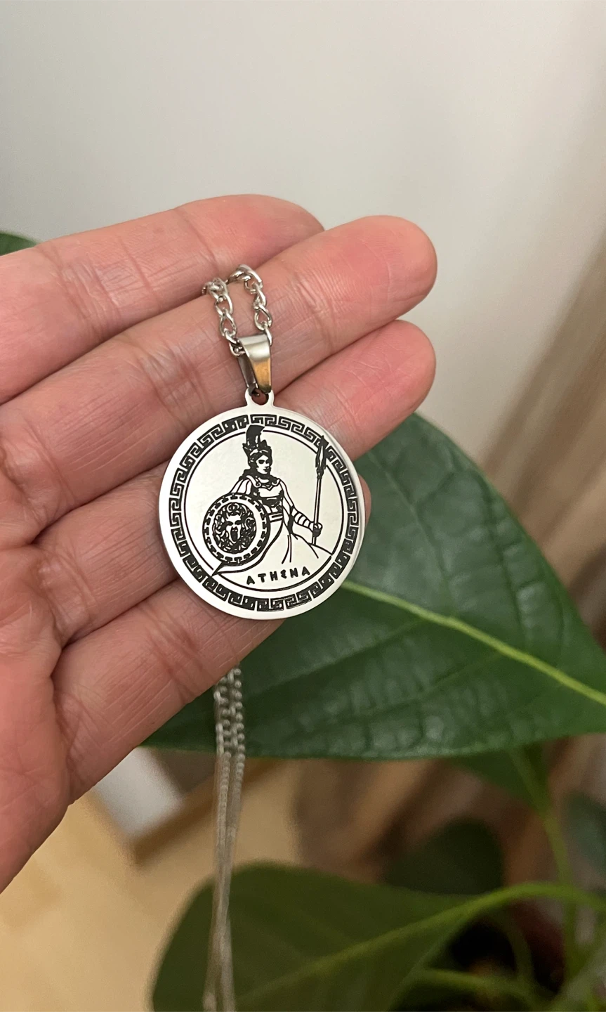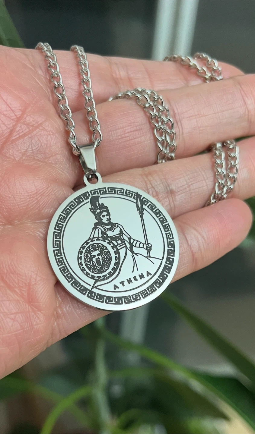 Selling a silver necklace with an Athena pendant. Perfect for anyone who loves mythology or unique jewelry!