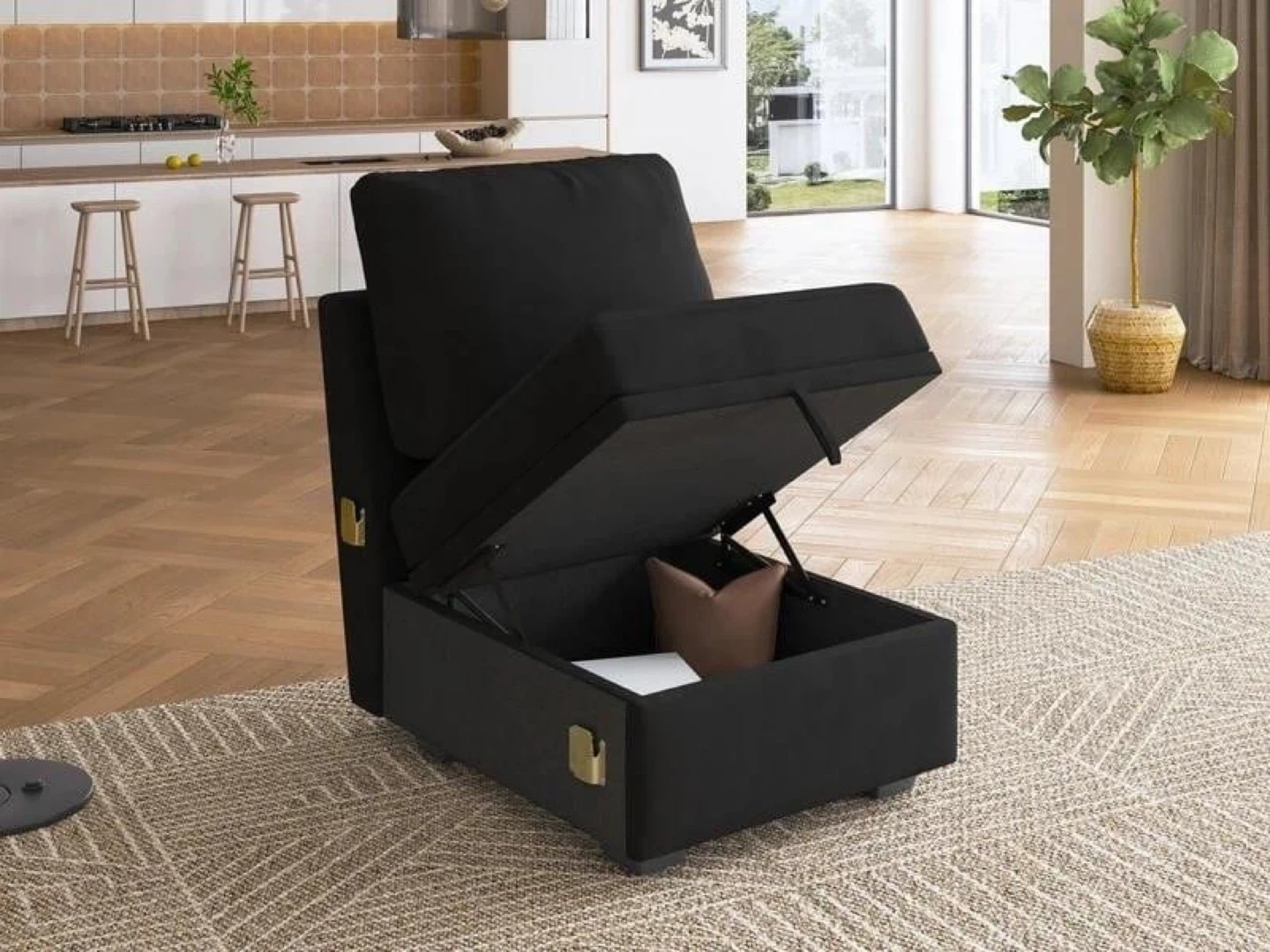 HONBAY Black Modular Sofa Chair w/ Storage - New!