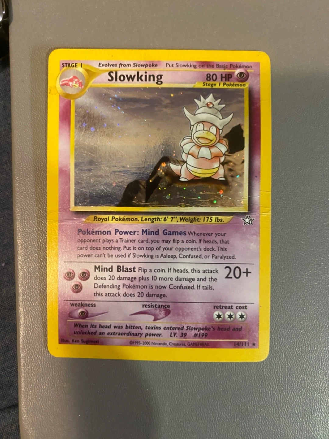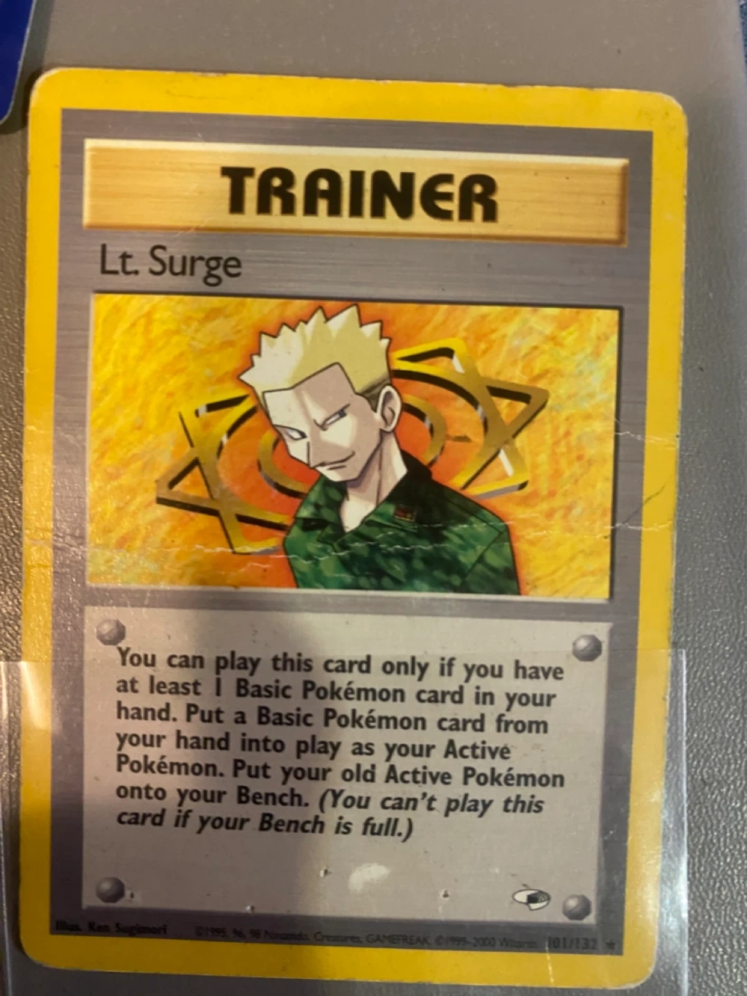 Selling a few Pokémon trading cards! Includes Kingdra, Lt. Surge, and Slowking. All in damaged condition, see photos for details