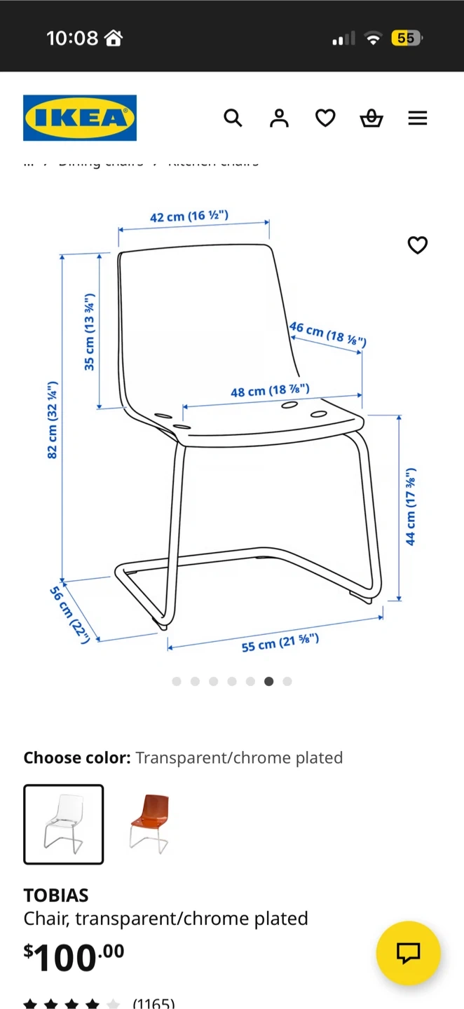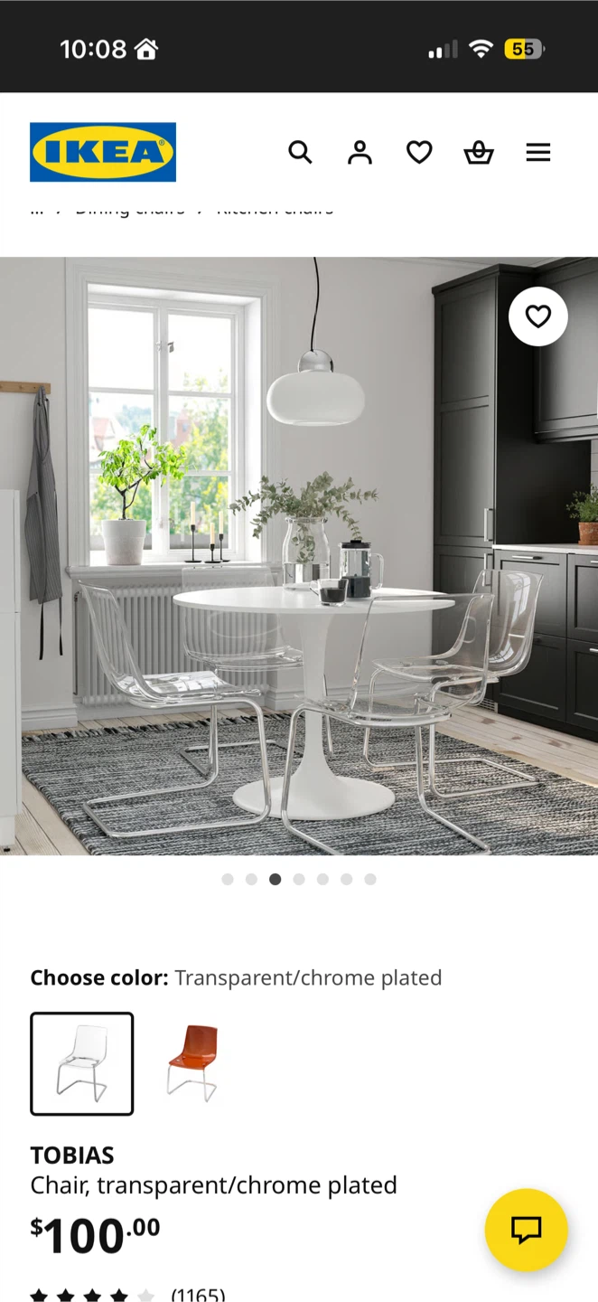 Selling two IKEA Tobias chair in transparent and chrome plated finish. They are almost new as I didn’t really used them. Ikea is selling it for $100+tax now.