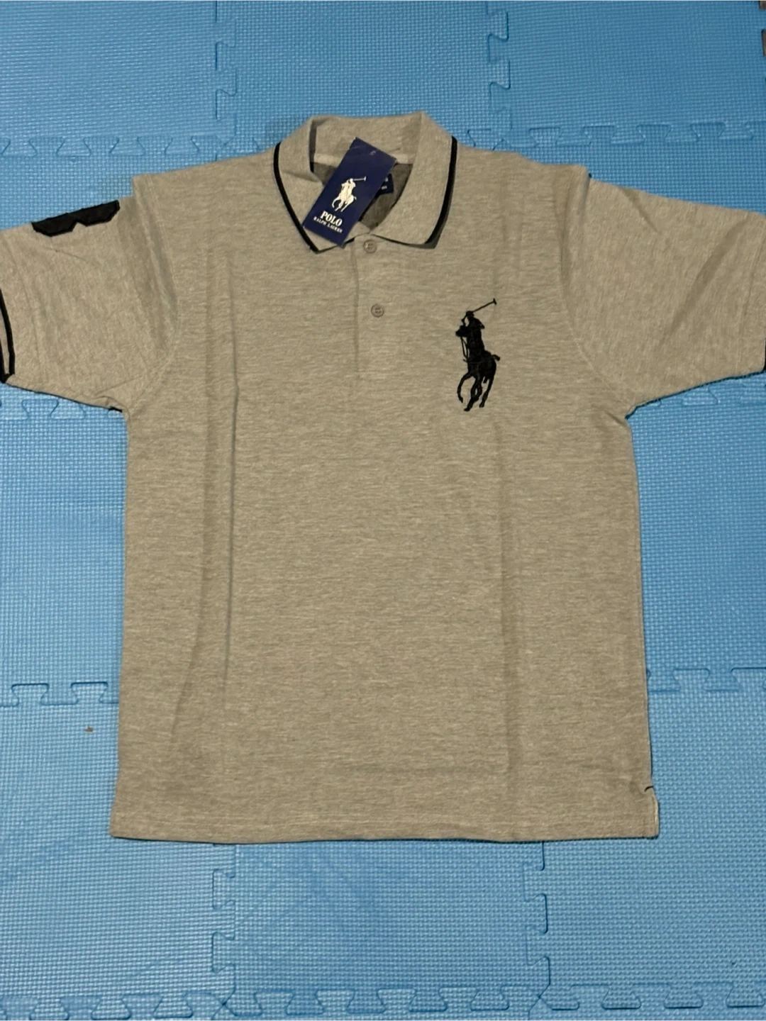 I'm selling a brand new Ralph Lauren polo shirt. It's a stylish grey colour and features the iconic Ralph Lauren logo. Perfect for a casual yet classy look!