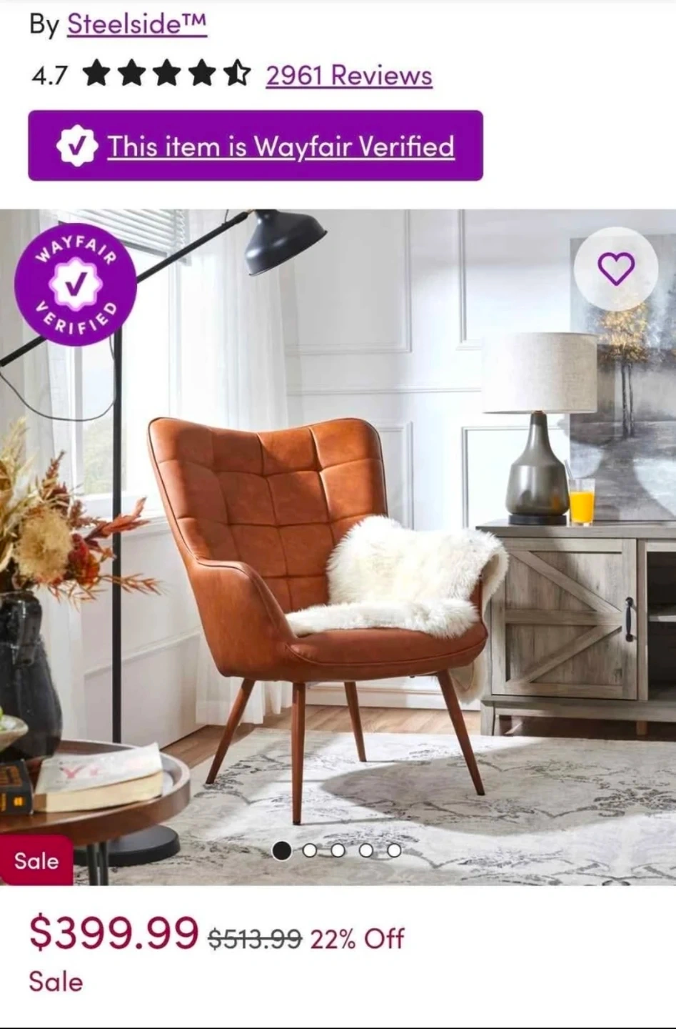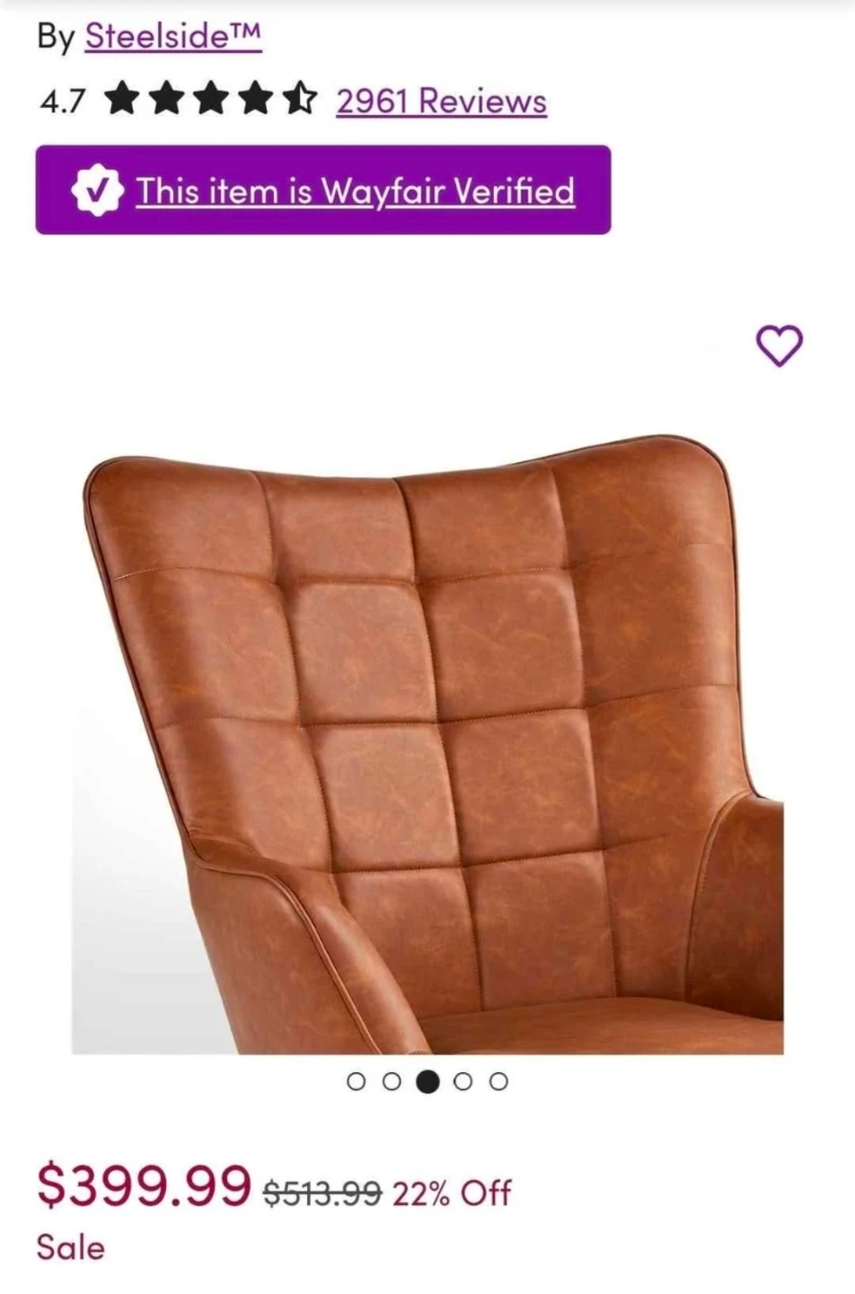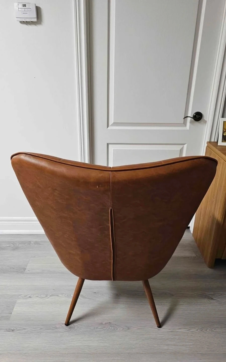 Selling a Steelside Aichele 28"W x 31.3"D Wingback Chair in brown faux leather. This mid-century oversized armchair is in great condition. Originally bought for $399.99. It can hold up to 300 lbs.