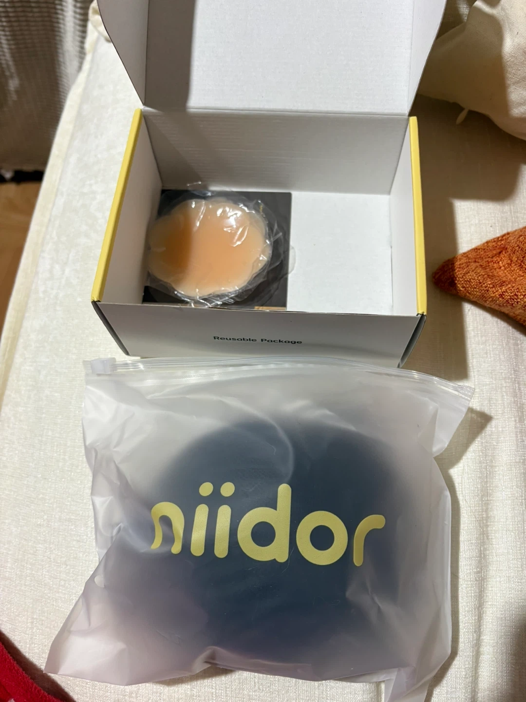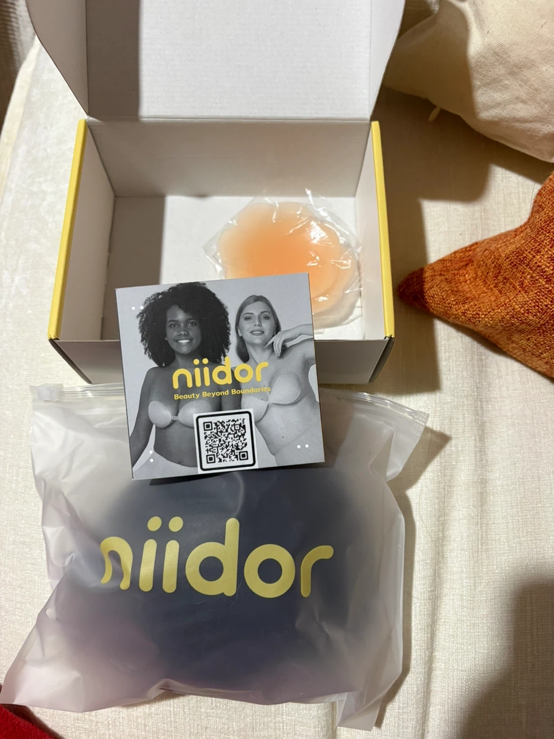 Selling a brand new niidor fabric strapless adhesive bra! It comes with the original box and packaging. Perfect for any outfit where you want a seamless look