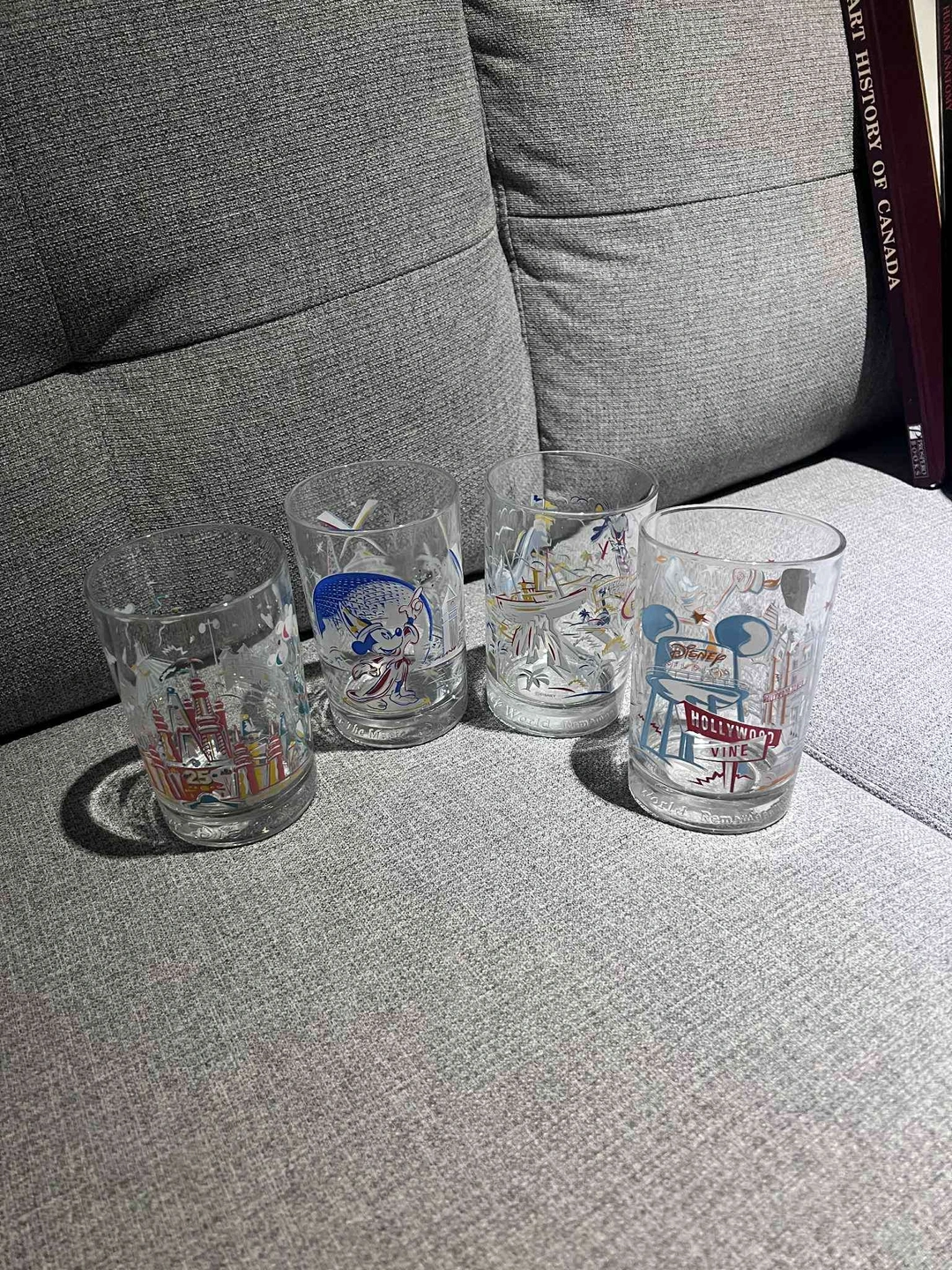 Selling a set of four Disney World 25th Anniversary glasses! Each glass features a different design from the parks. They're in great condition and ready for a new home.