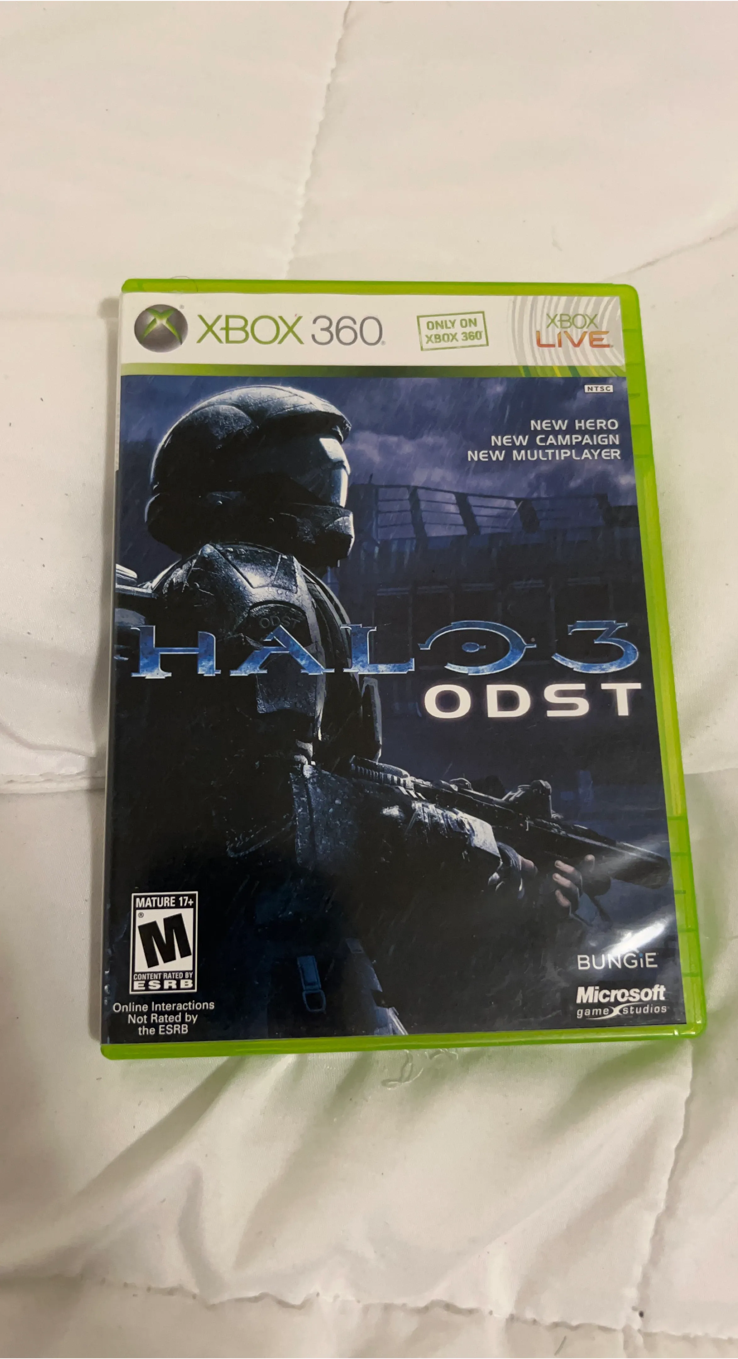 Selling Halo 3 ODST for the Xbox 360. It's rated M for Mature 17+ by the ESRB. It features a new hero, a new campaign, and new multiplayer options. A great addition to your Xbox 360 collection!