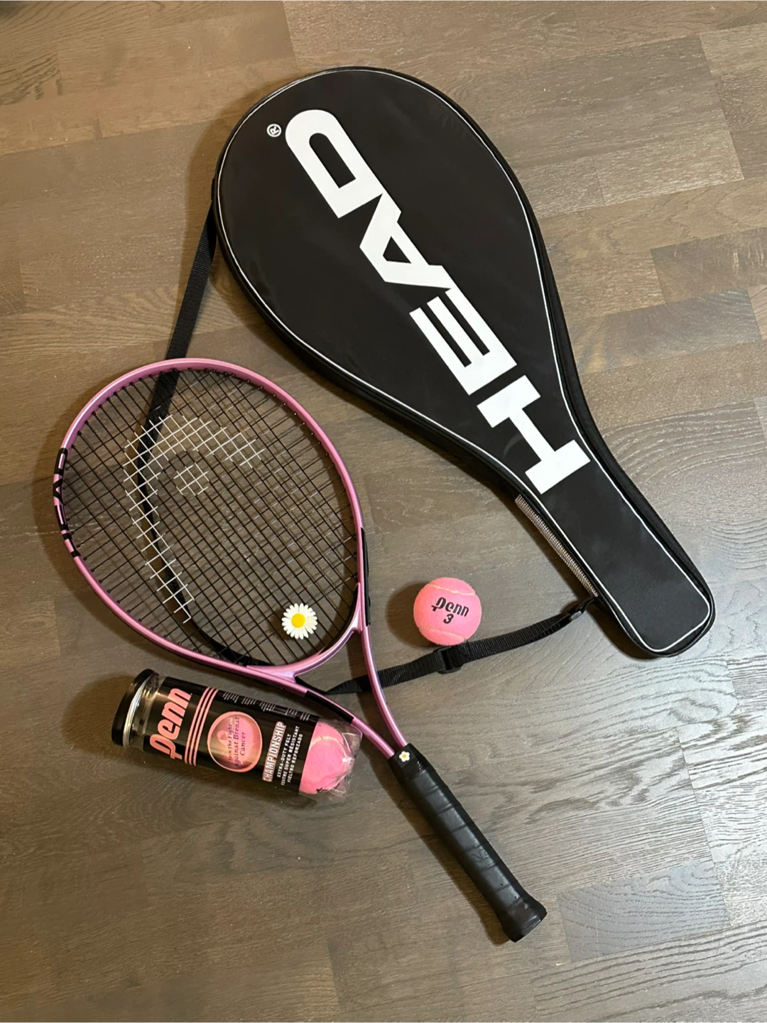 Selling a HEAD tennis racquet in pink! It comes with a case for easy transport and storage