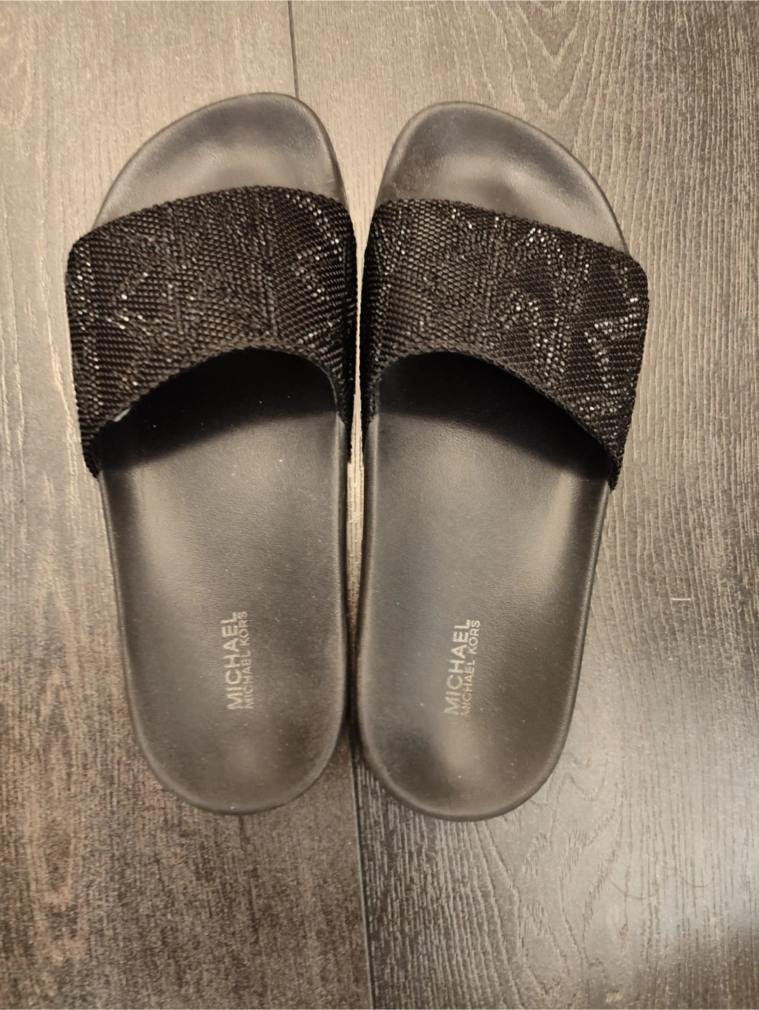 Buy & SellMichael Kors Black Embellished SlidesMichael Kors Black Embellished Slides$45These Michael Kors slides are good condition and comes with the original box.ConditionLike newSize37BrandMichael KorsWHERE TO MEETYonge & KingView MapSELLERverifiedAnnaKing East35825 reviews0 chats·0 favorites·9 viewsSEND CHAT TO SELLERHi Anna! I’m interested in your listing.Hi Anna! I’m interested in your listing.Get the Karrot app to chatSign In to chat