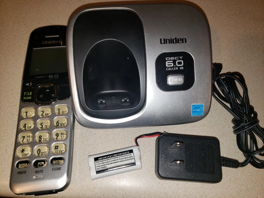 Selling a Uniden DECT 6.0 cordless phone. It comes with the base, handset, battery, and power adapter. Perfect for home or office use!