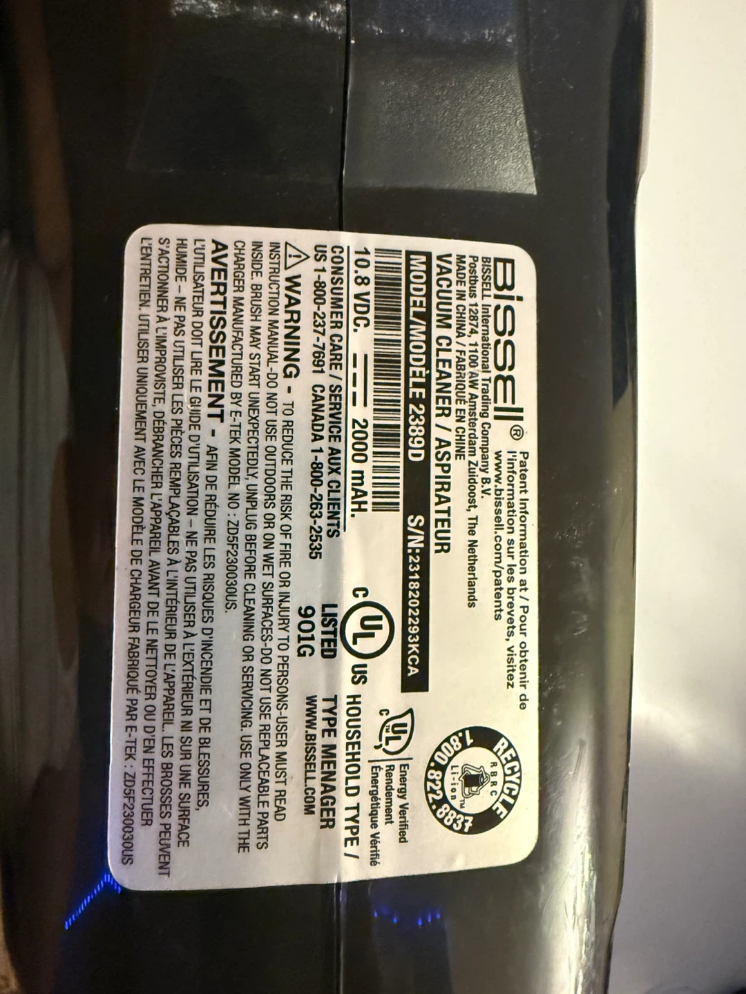 Bissell PowerClean Ion cordless handheld vacuum.