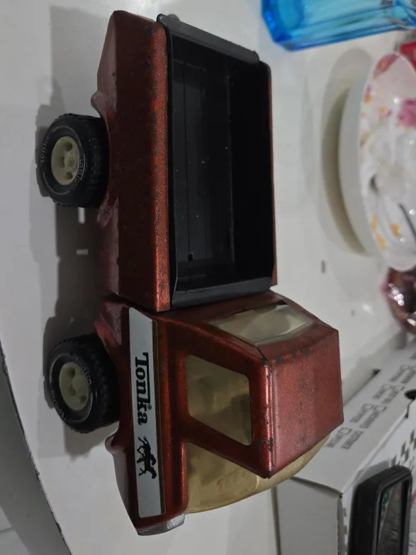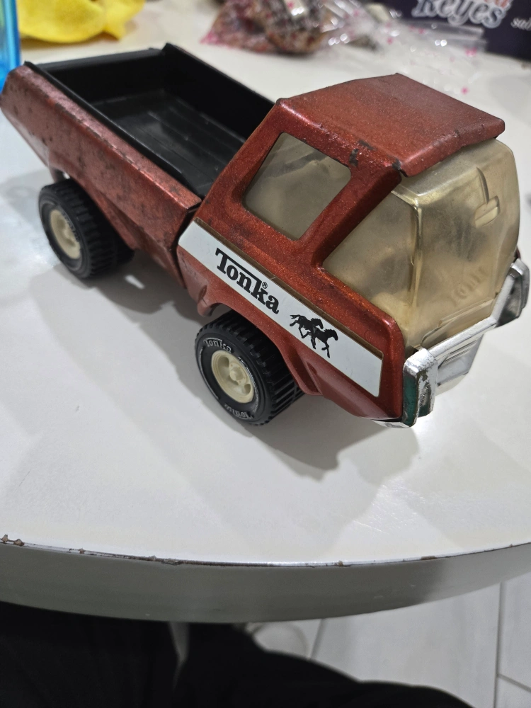Selling a classic Tonka dump truck! This sturdy toy has the classic Tonka design and is ready for a new adventure. It shows some signs of wear, adding to its vintage charm. Perfect for collectors or kids who love playing with trucks