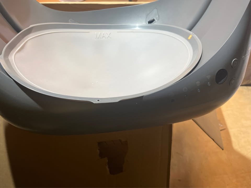 Hassle-Free Setup & Easy Refill Litter: Pre-assembled design Unbox, plug in, and pour litter (no tools required). To pour out the used cat litter, you need to tilt the litter box forward and pour the litter into the trash bin. Saves 80% of setup time. Lift the cat ears, the top-fill system lets you refill new litter via the wide opening.