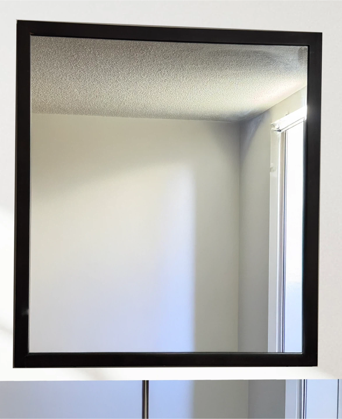 Selling a square mirror with a sleek black frame. It's in great shape and ready to add a touch of modern style to your space