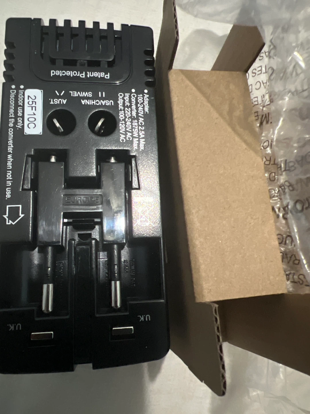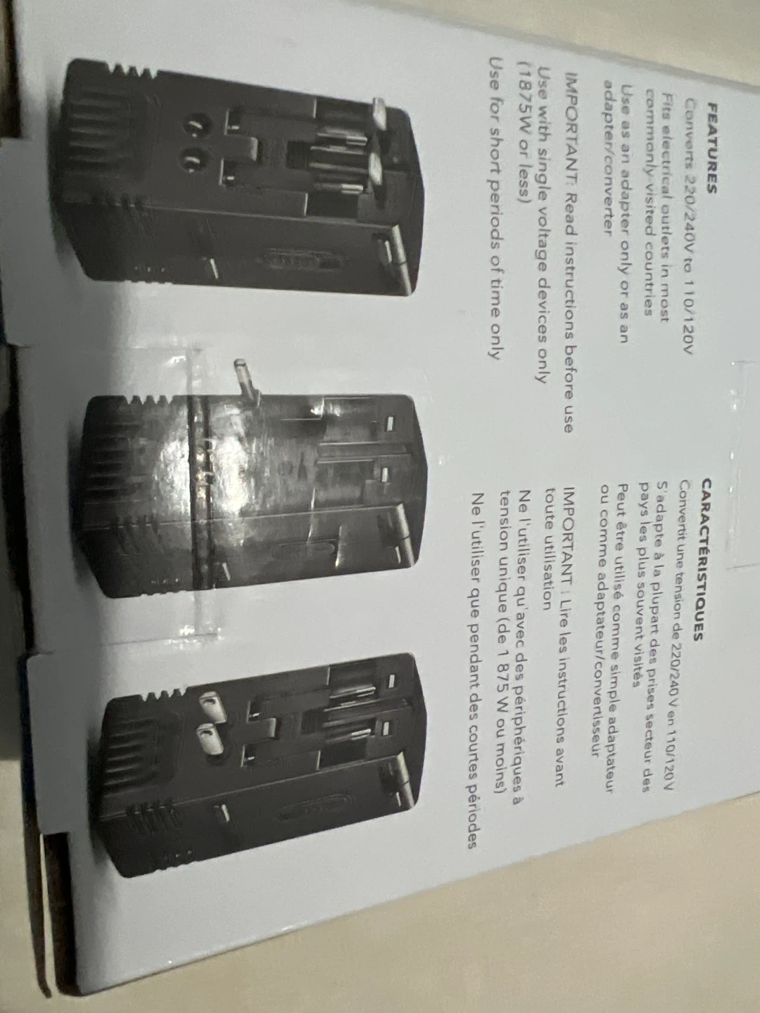 It converts 220/240V to 110/120V and fits electrical outlets in most commonly visited countries. It can be used as an adapter only or as a converter for short periods of time.