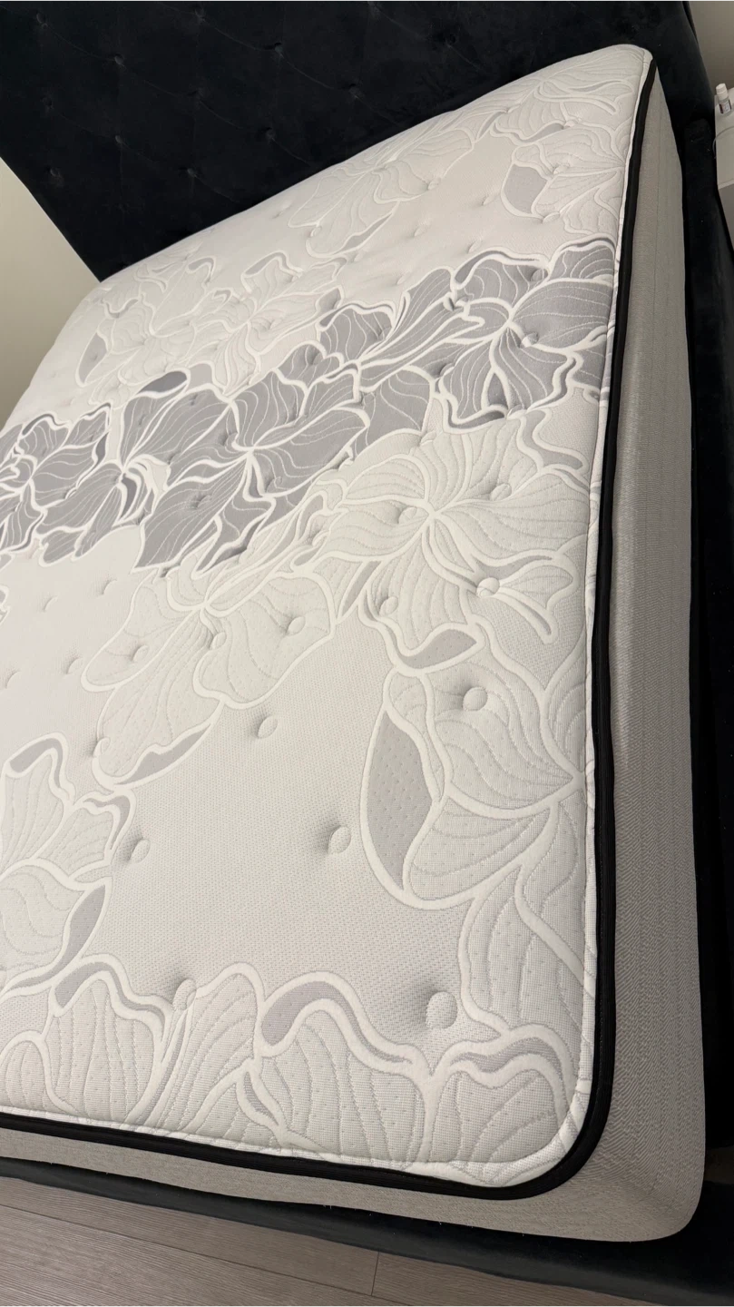 Selling a Sealy Proback Plus Posturepedic mattress. It features a floral design on the top surface. The mattress is clean and in great shape and ready for a new home. It comes with the mattress protector and boxspring. Selling as upgrading to a king size bed.