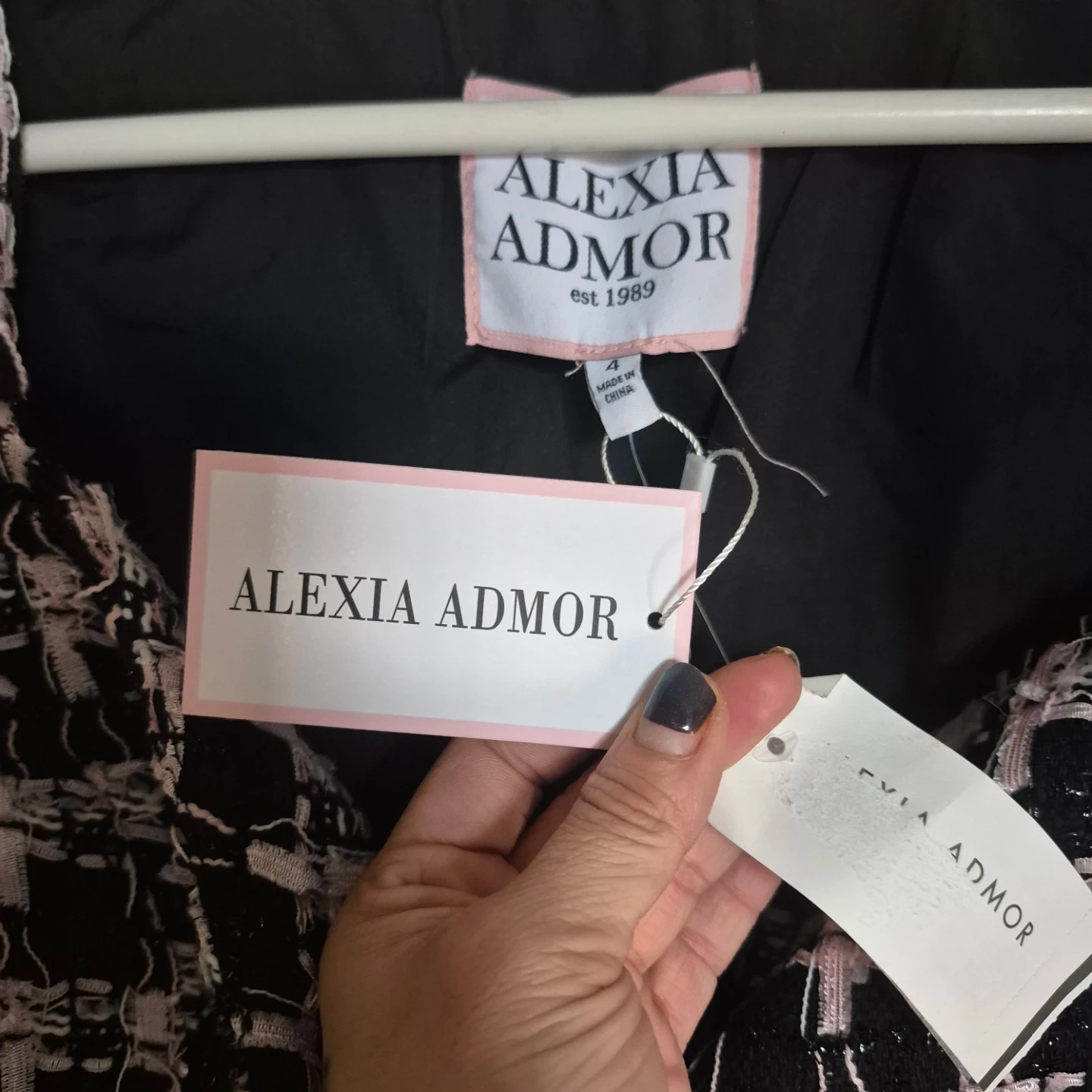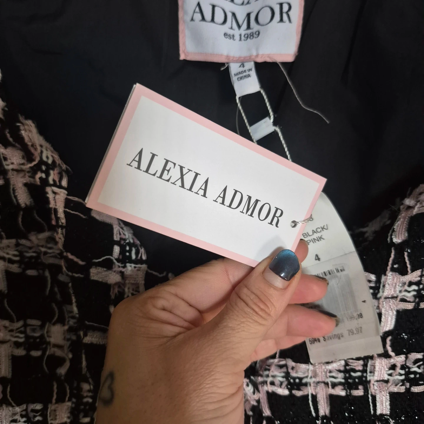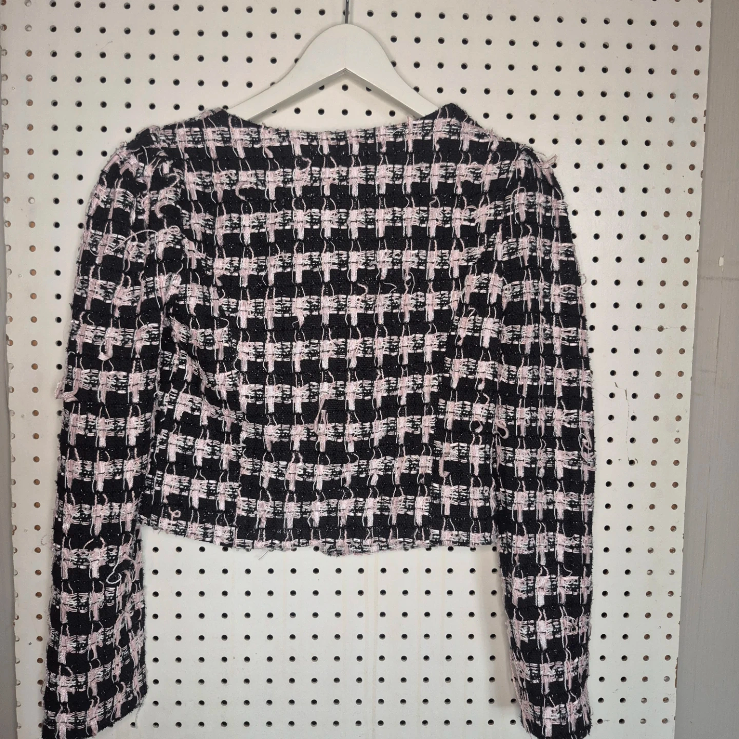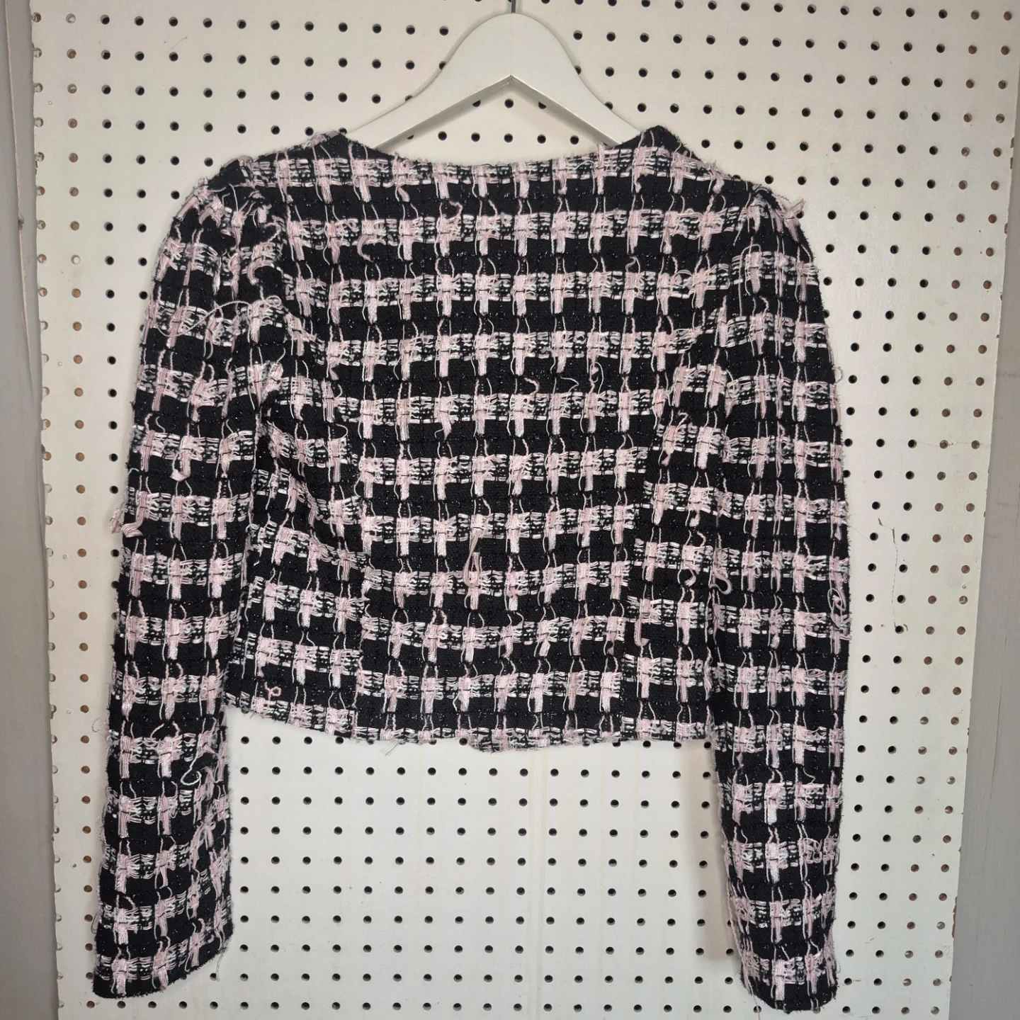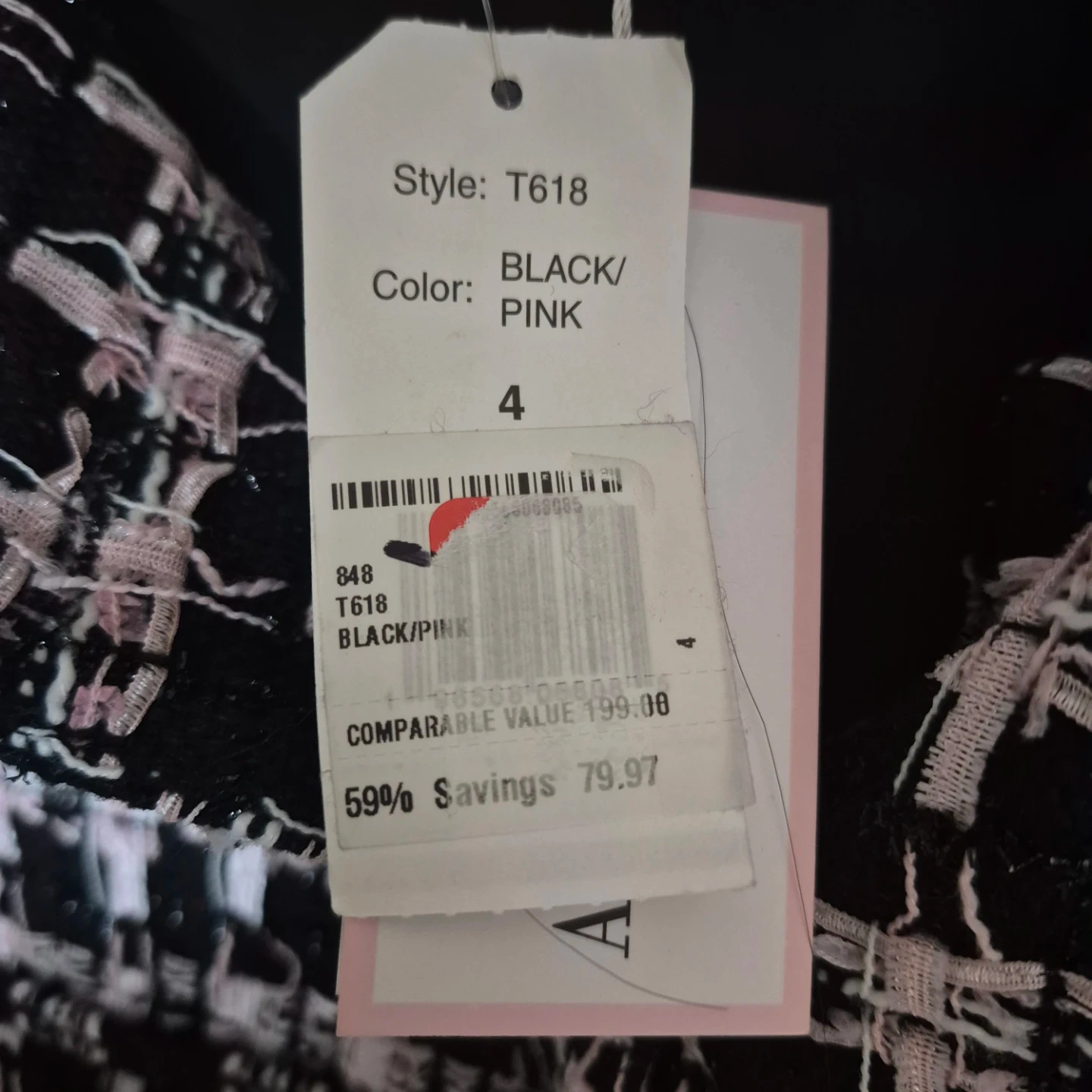 Selling an Alexia Admor cropped tweed jacket in a stylish black and pink colour combination! The jacket is a size 4 and has a style number of T618. Originally valued at $199.00, this is a steal!