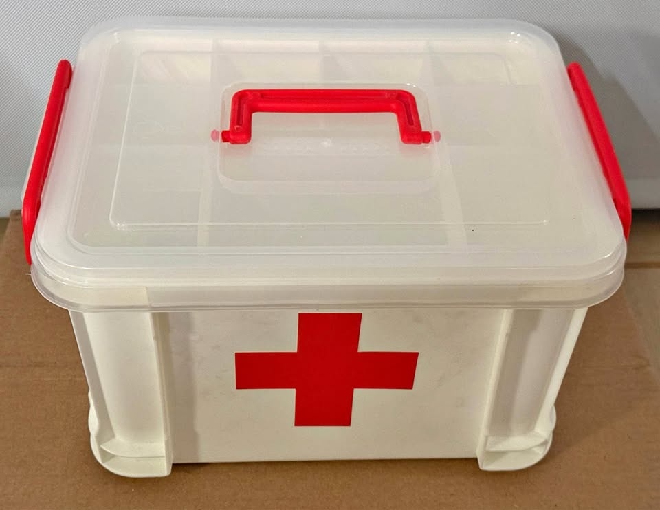 • Removable Tray: Includes a clear inner divider tray for small items like band-aids, ointments, and thermometers.