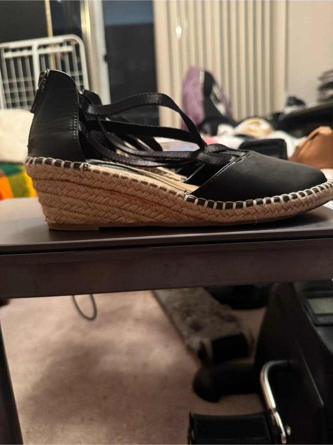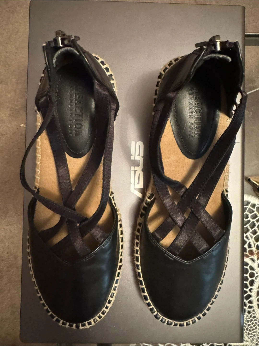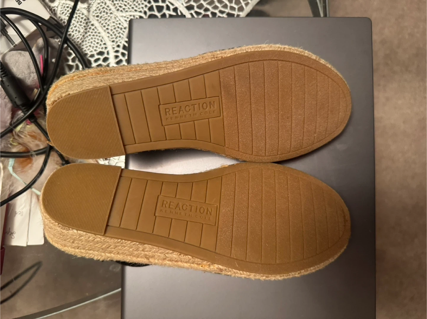 Reaction Kenneth Cole Black Espadrille Wedge Sandals, Size 6.5