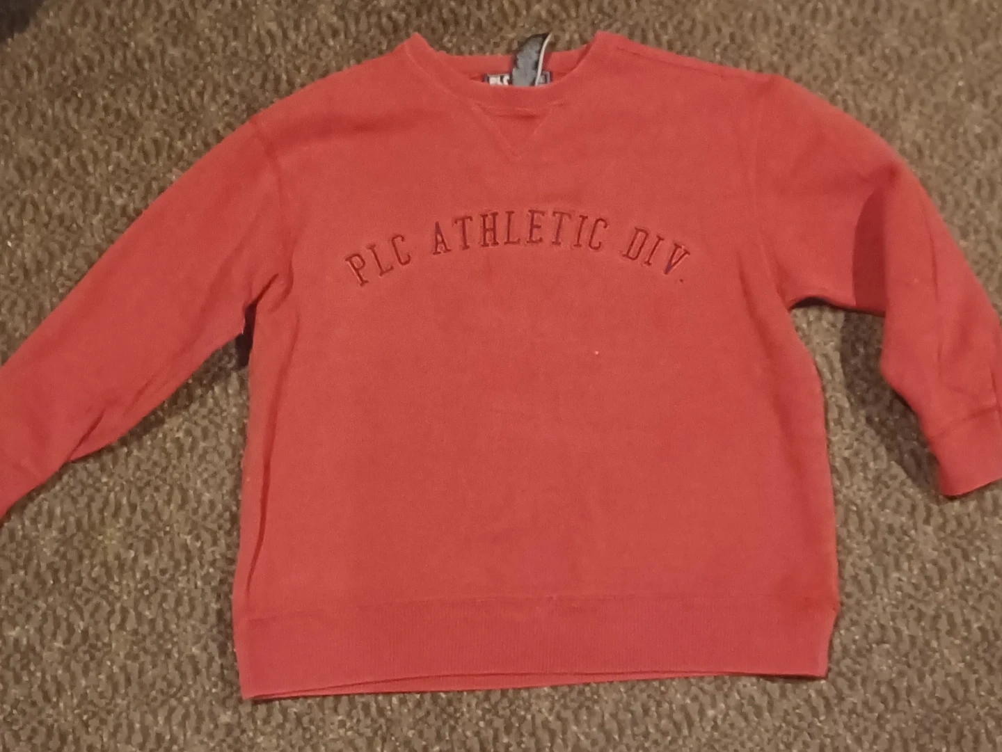 This is a PLC sweater, size medium, suitable for kids aged 7-8. It is in used condition, as shown in the photos.