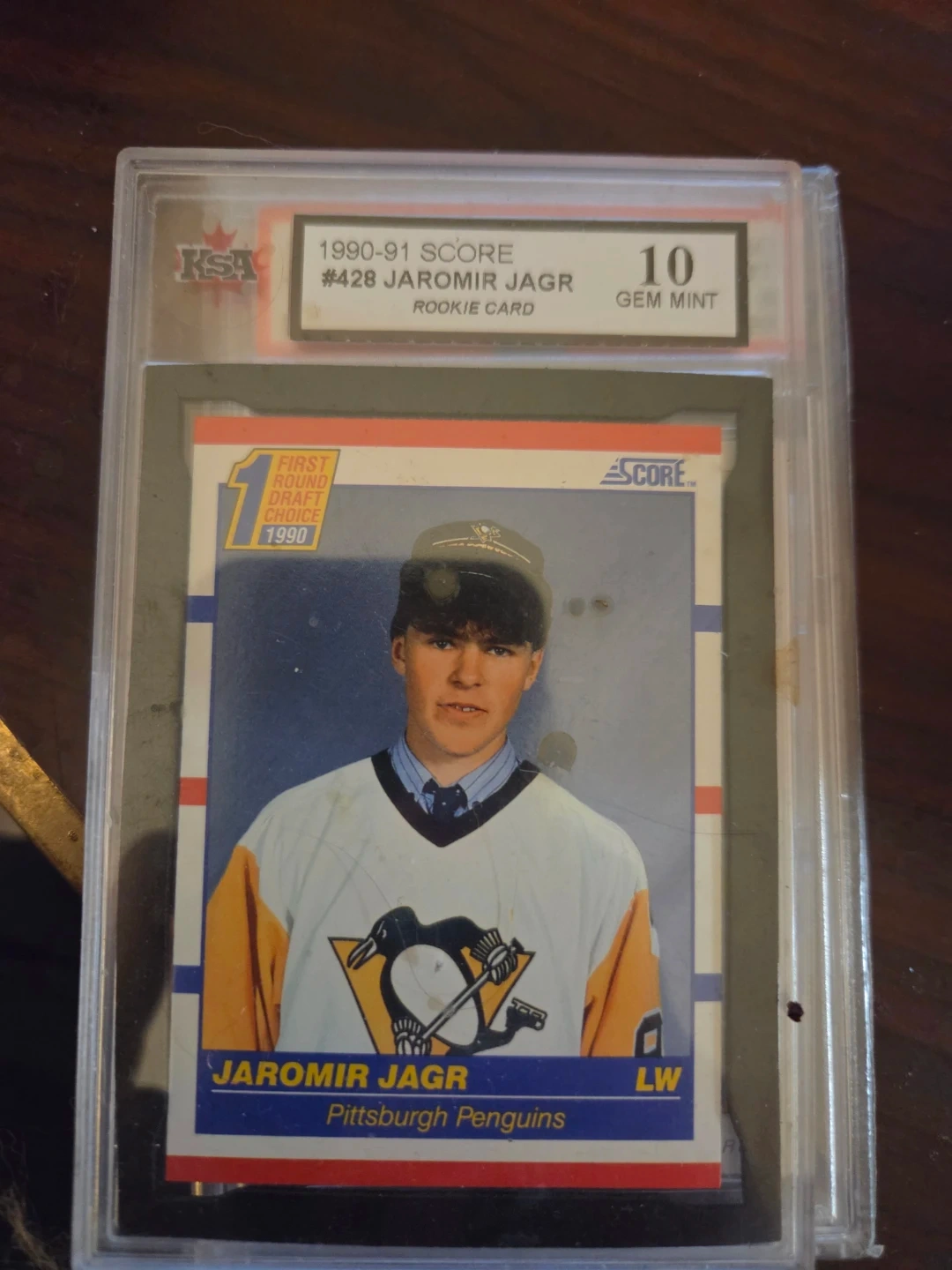 Selling a 1990-91 Score #428 Jaromir Jagr rookie card. It's graded as a 10 Gem Mint by KSA. A great addition to any hockey card collection!