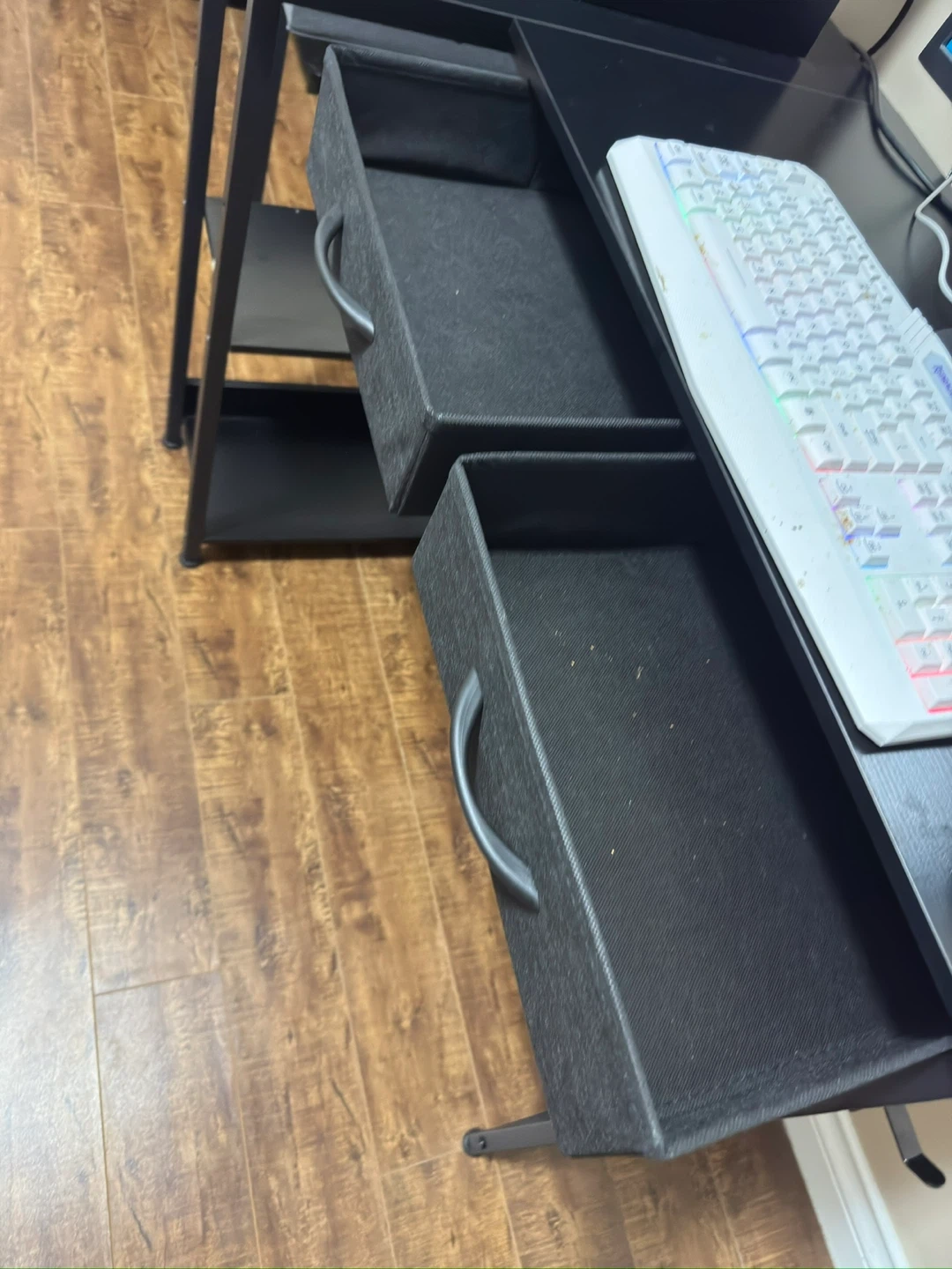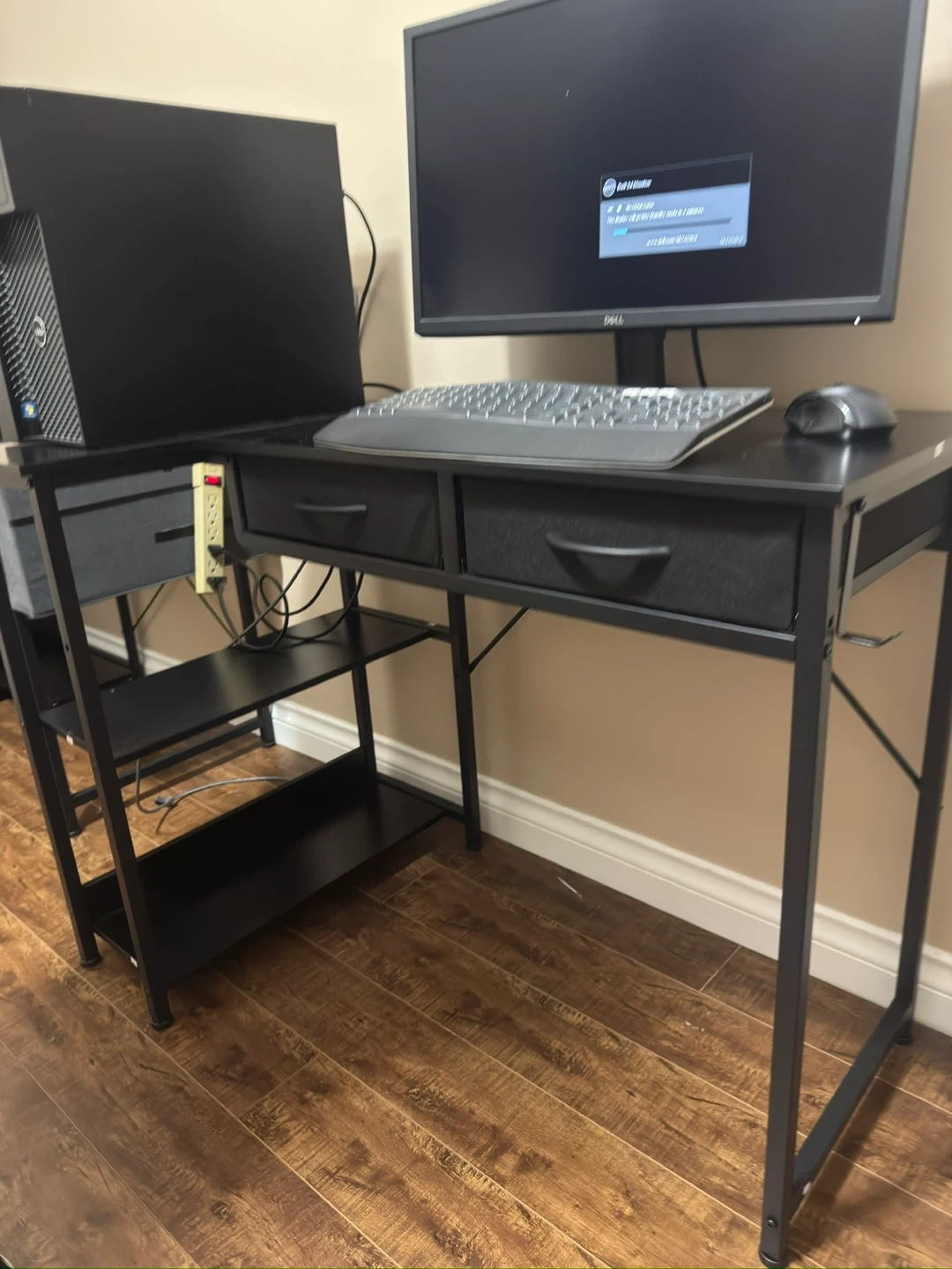Selling a black computer desk in great condition! It features two drawers for storage and shelving on the side. Perfect for a home office or gaming setup. Wasn’t used much just had been sitting in my guest bedroom. Dimensions are W:39” D:24” H:29” message for more info.