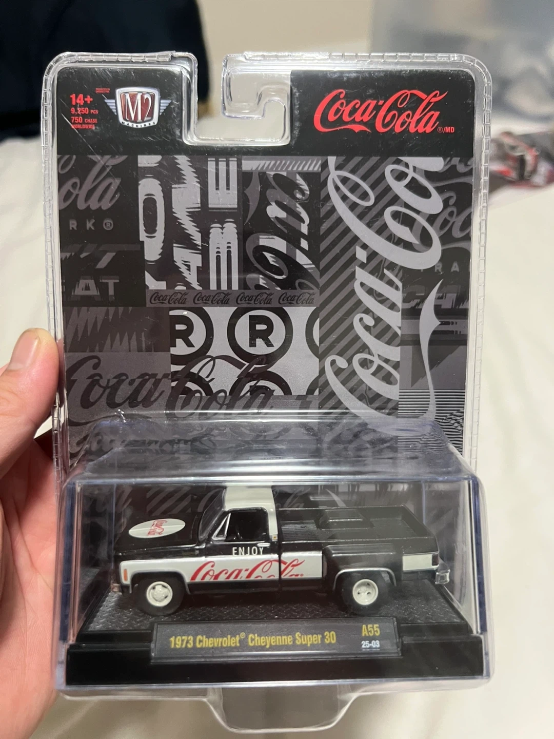 Selling an M2 Machines Coca-Cola 1973 Chevrolet Cheyenne Super 30 diecast truck! It's in great condition and comes in its original packaging. Part of a limited edition run of 9,250 pieces worldwide, with 750 chase variants.