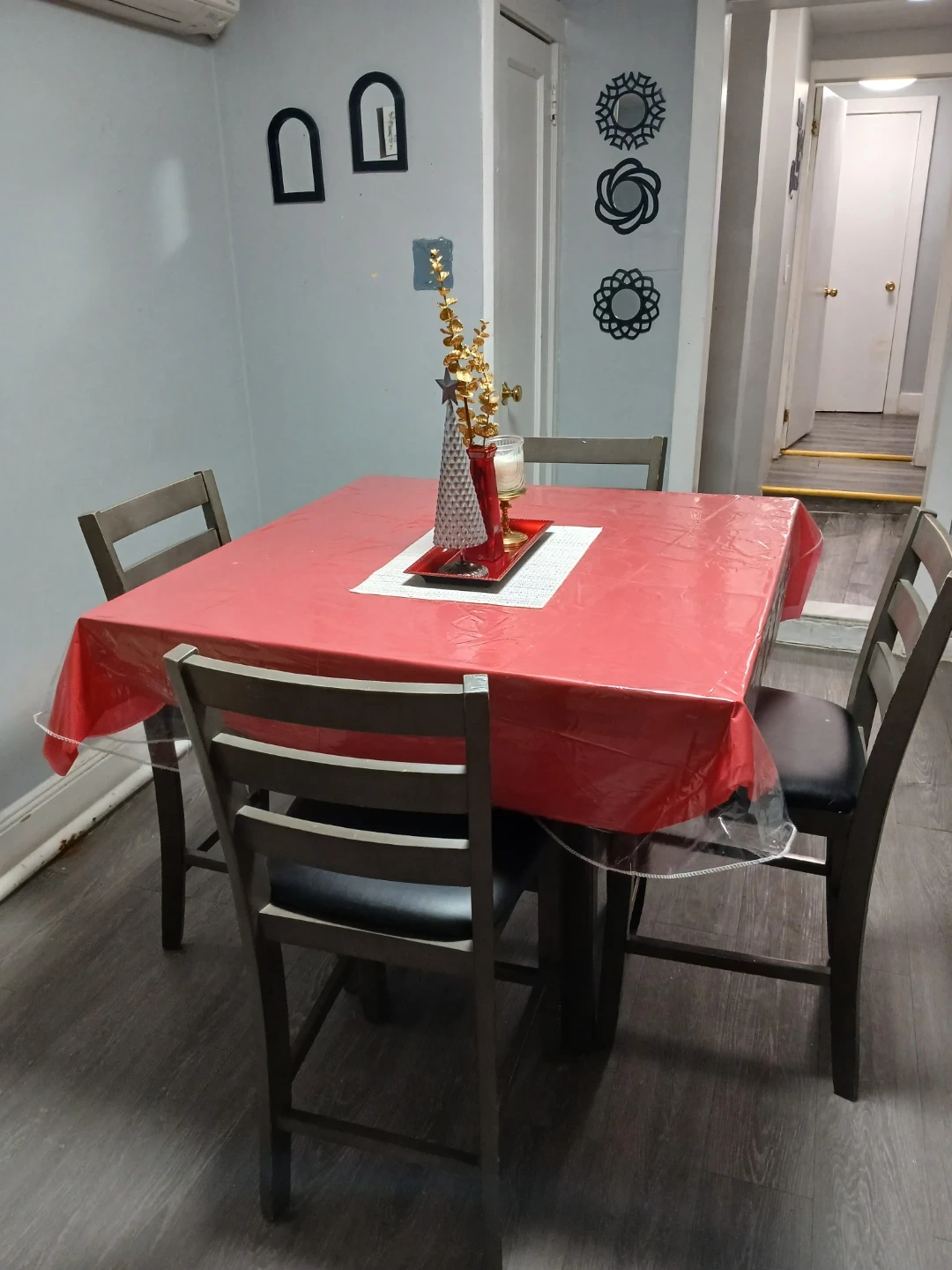 Selling a mirrored ,dresser 5 chairs,and dinner table! It's in good condition and would be a beautiful addition to your home