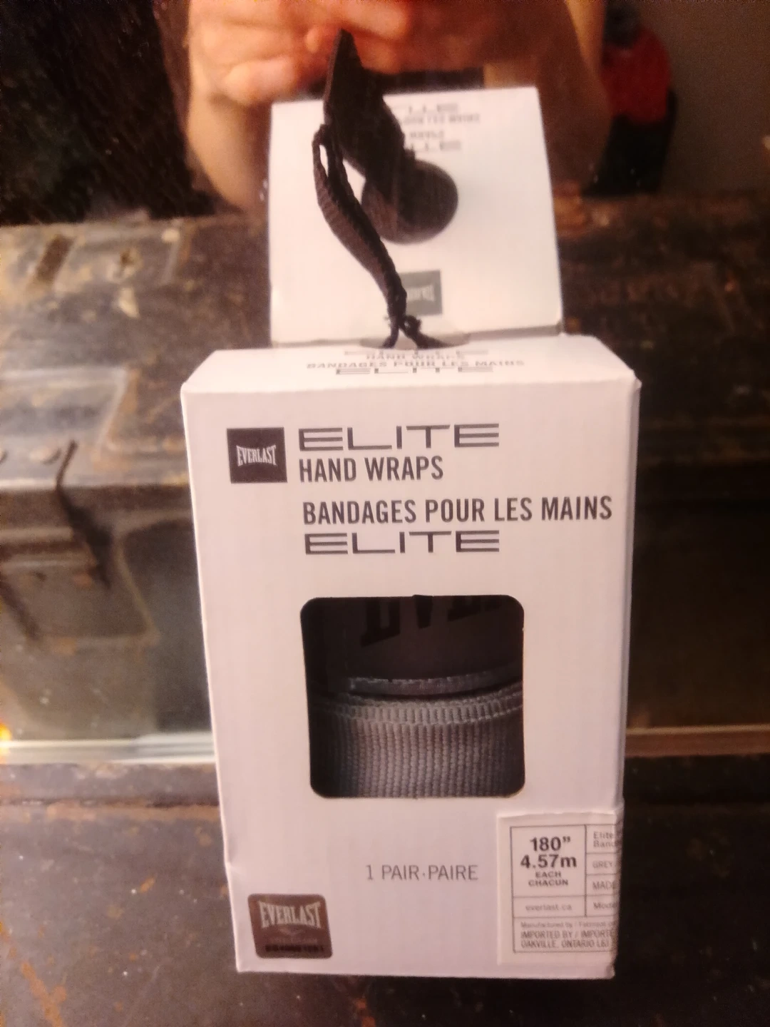Selling a brand new pair of Everlast Elite Hand Wraps! They're still in the original box and ready for your next training session. These are charcoal grey and measure 180" (4.57m).