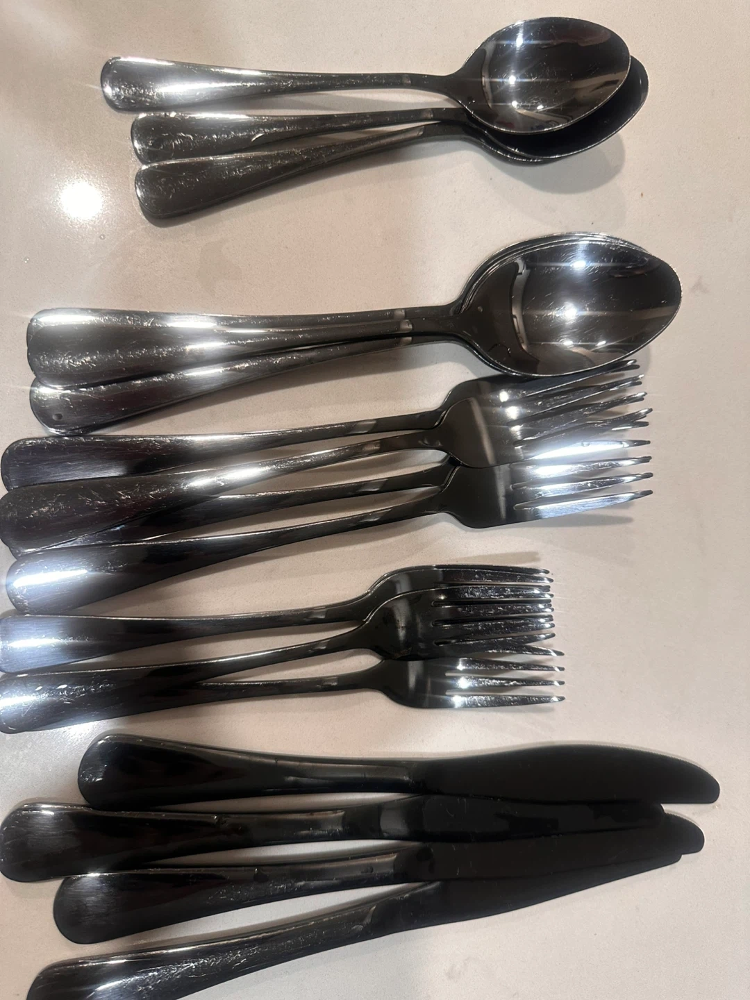 Selling a set of stainless steel cutlery! Includes spoons, forks, and knives. Perfect for everyday use or for setting a nice table. They're in good condition.