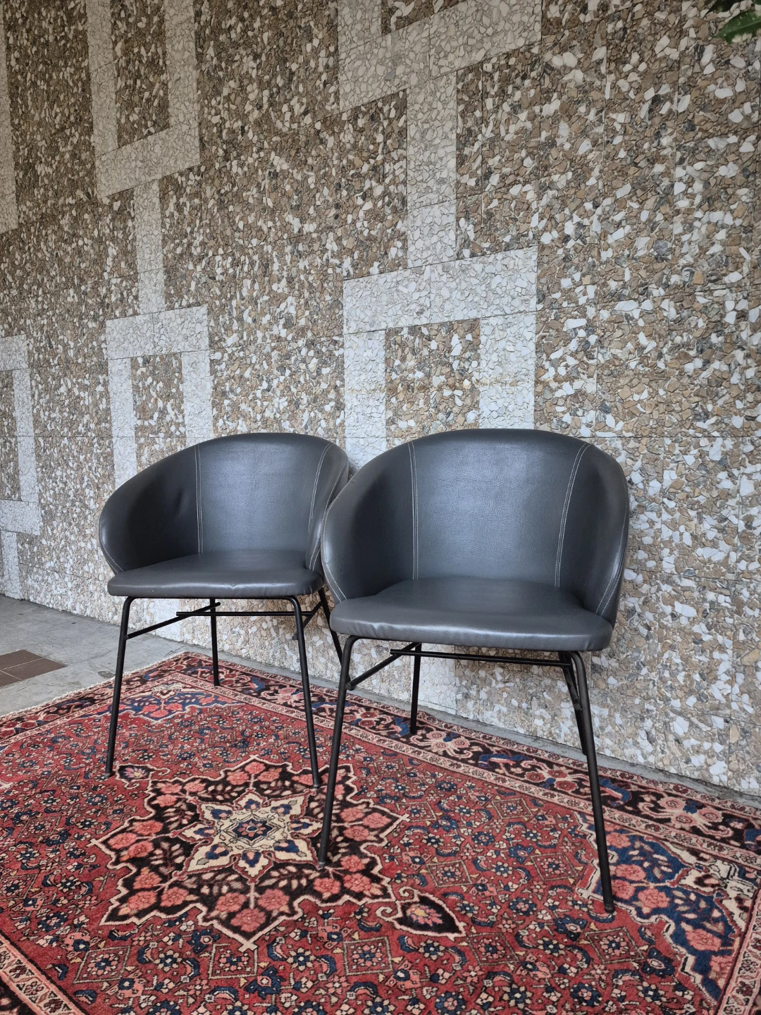 Modern grey accent chairs with metal legs. Clean sturdy and in great condition. Ideal for office, dining or waiting area. 8 chairs available price is per chair.