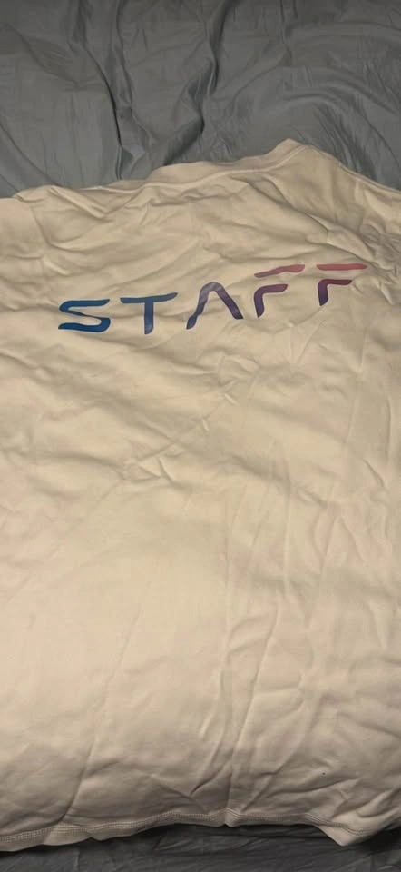 A Hoyoverse Staff T-Shirt that says Staff on the back of it, also has a small pen stain line on the front side. It’s an XXL but it’s definitely not in American Sizing. Cool pick up if you’re a fan of Hoyoverse games and want something unique! Local pickup only.