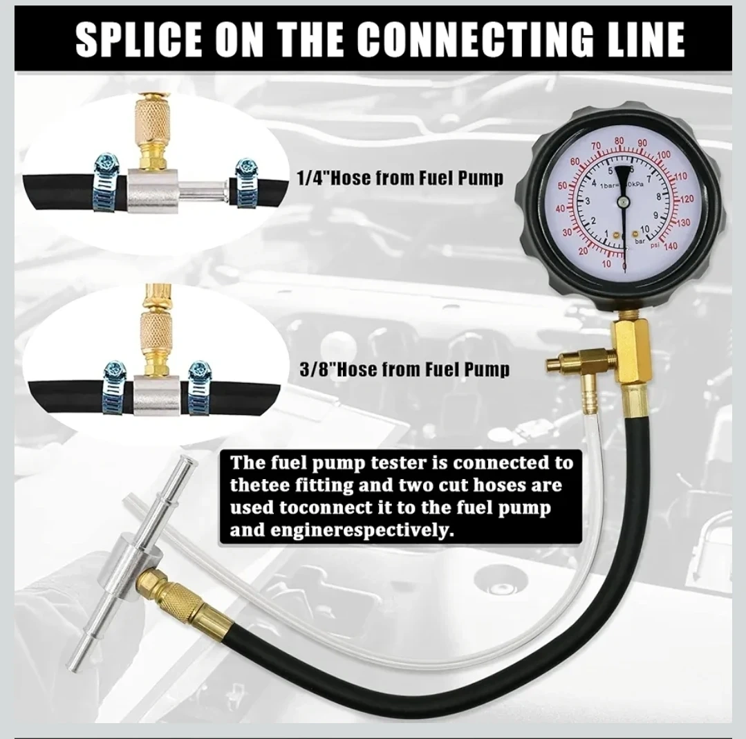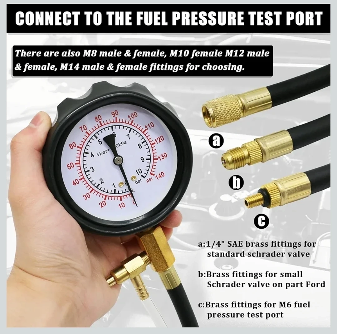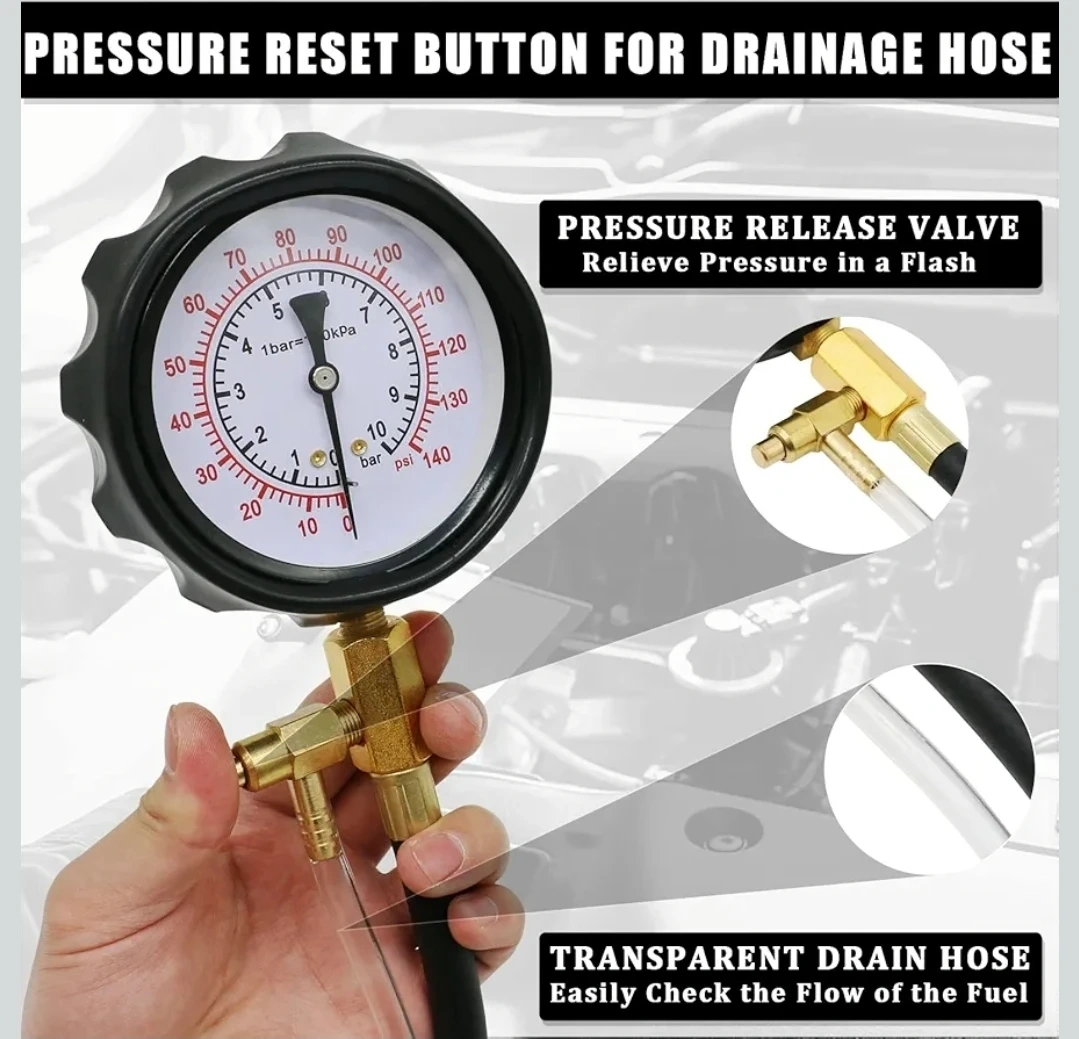 Universal Fuel System Pressure Tester 0–140 PSI, Car, Motorcycle