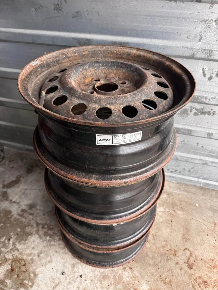 These are solid, straight rims with surface rust (see photos) — typical wear from winter use. No cracks or bends to my knowledge. Great as winter rims or spare set.