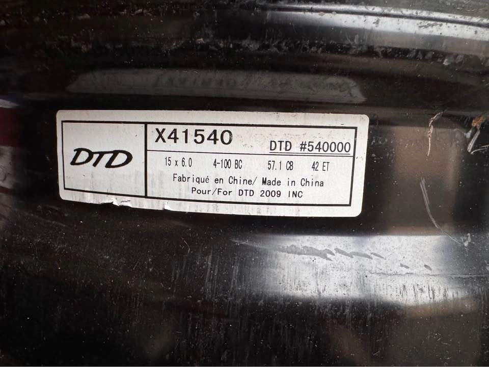 15” Steel Rims – Set of 4 – 4×100 Bolt Pattern