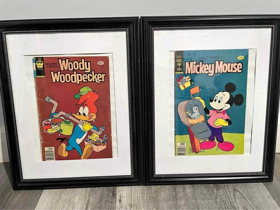 $15 each or both for $30! Framed Mickey Mouse and woody woodpecker comics from the 60s still in super good condition!