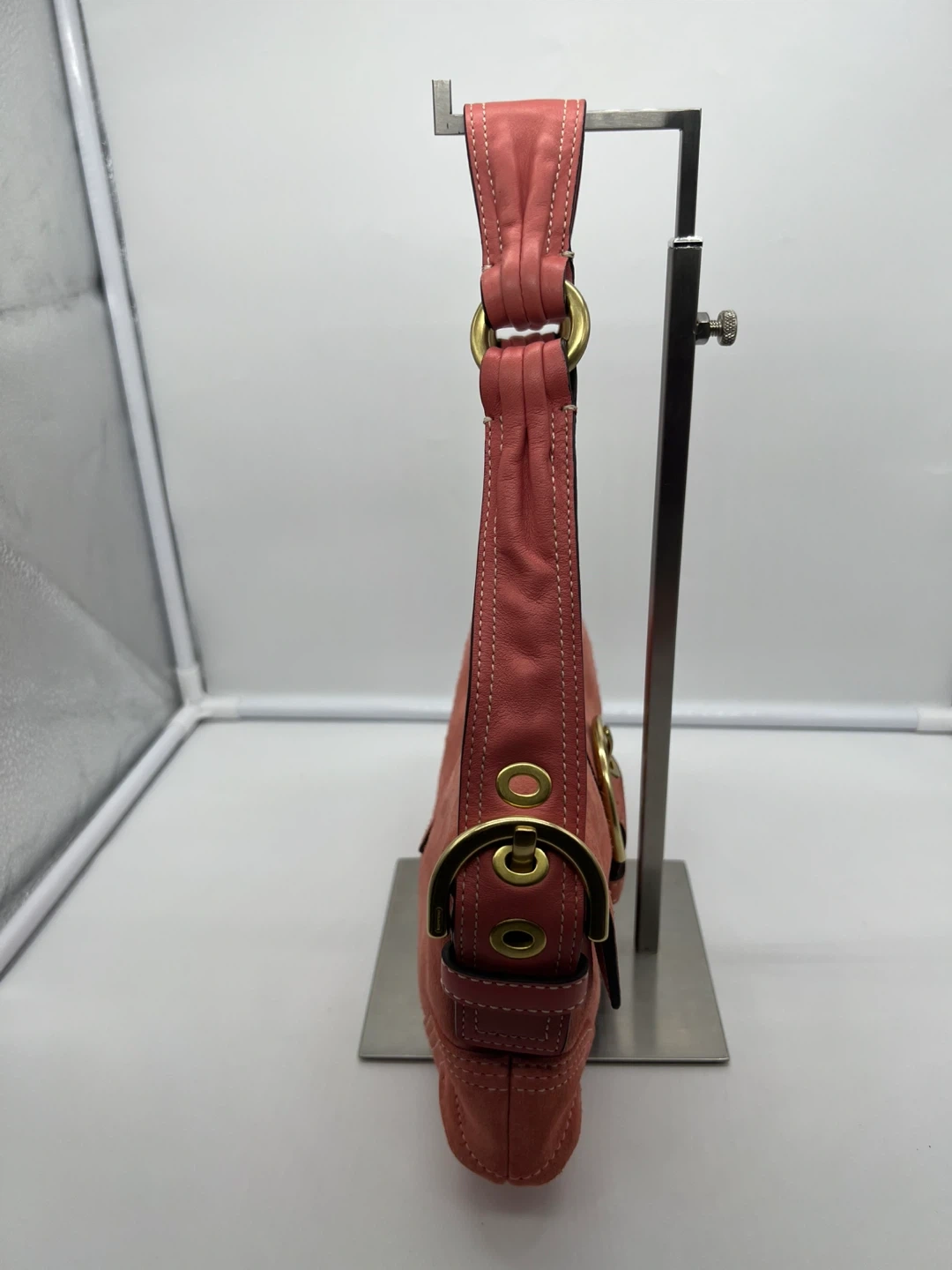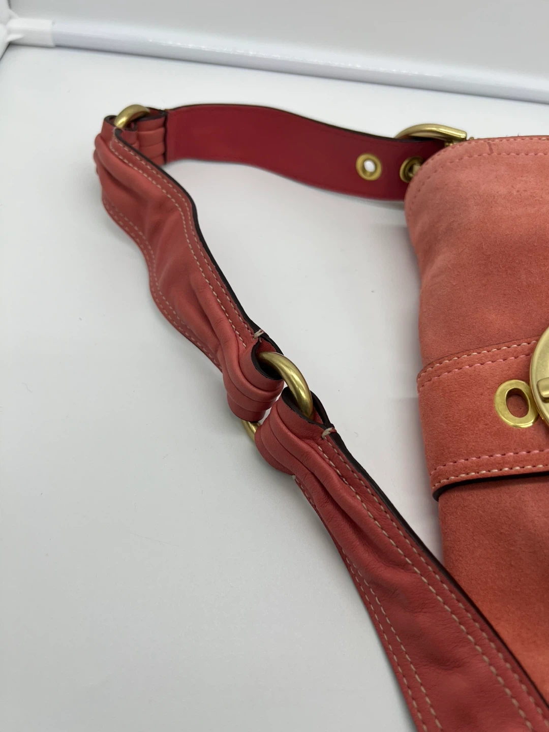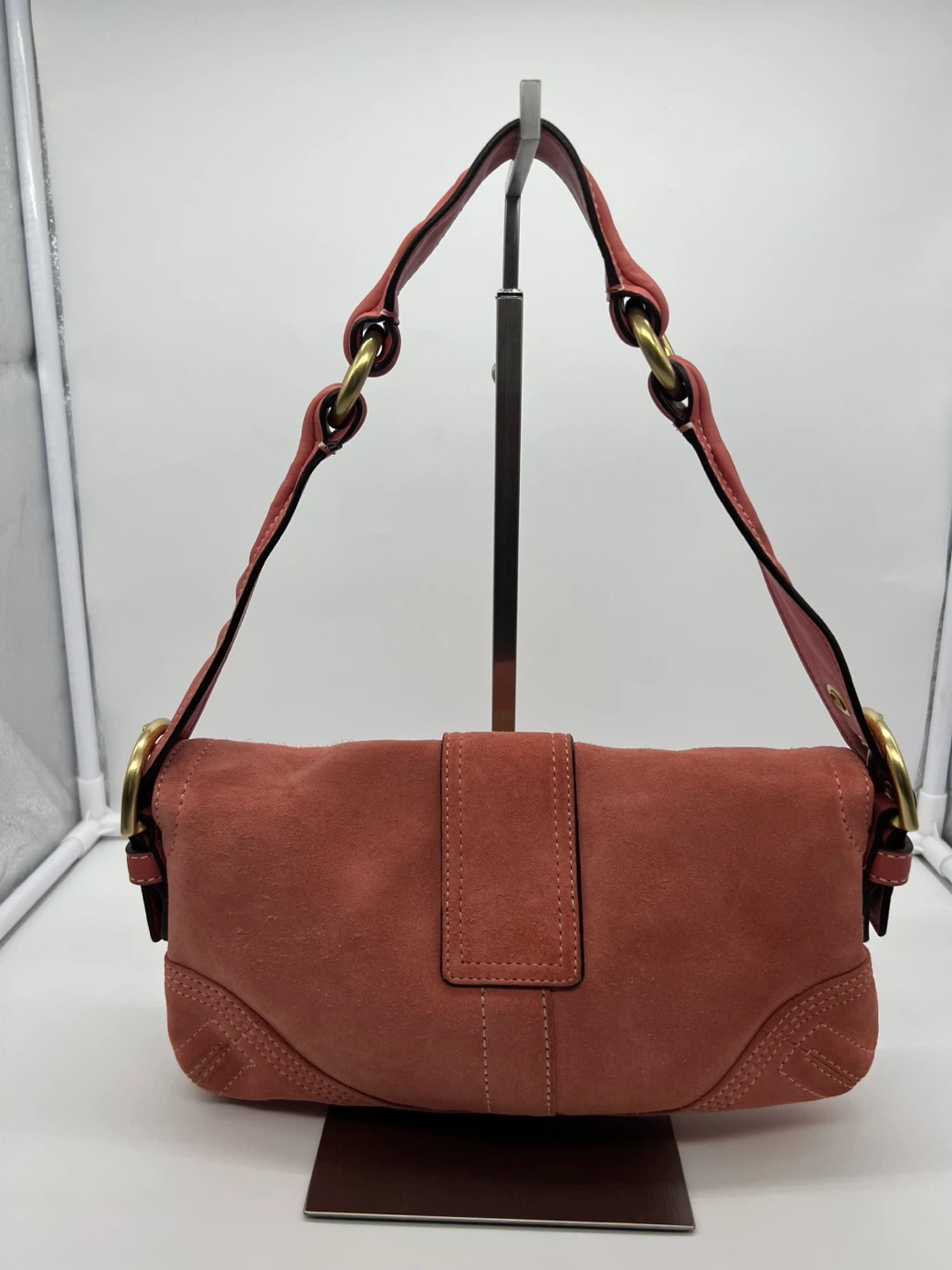 COACH VINTAGE Y2K Soho Demi Flap Salmon Suede Baguette