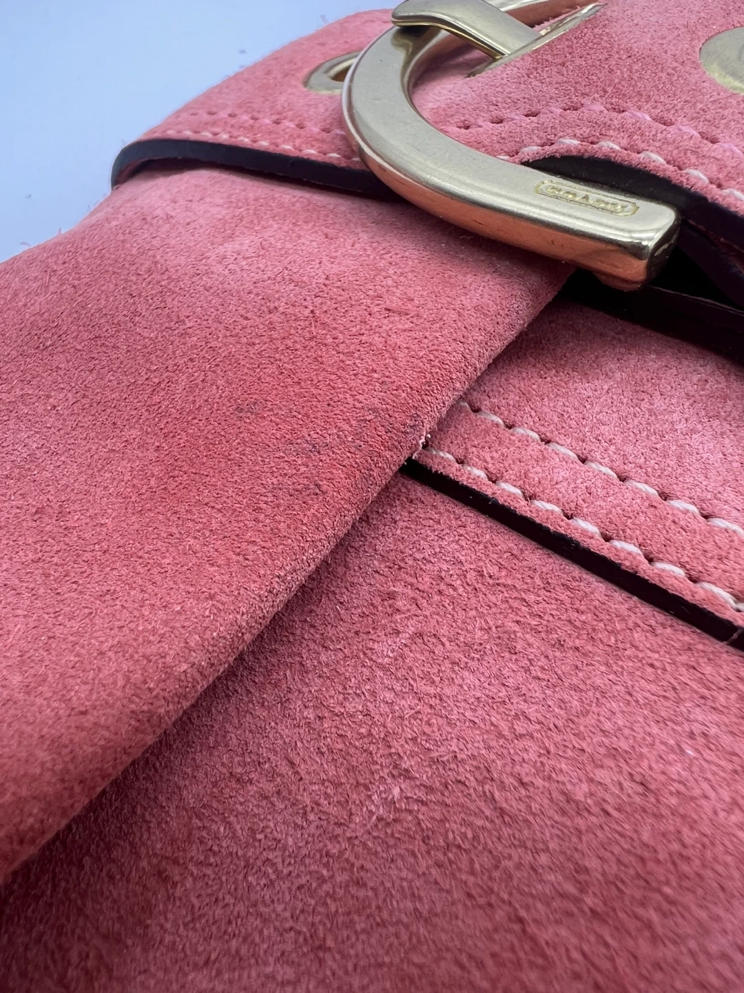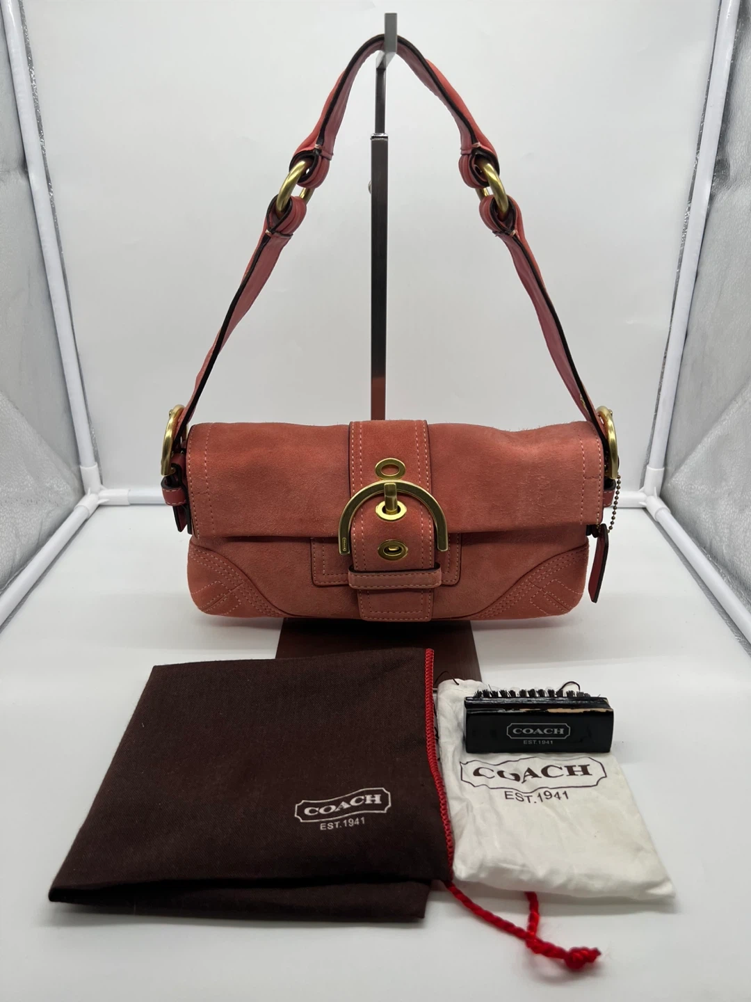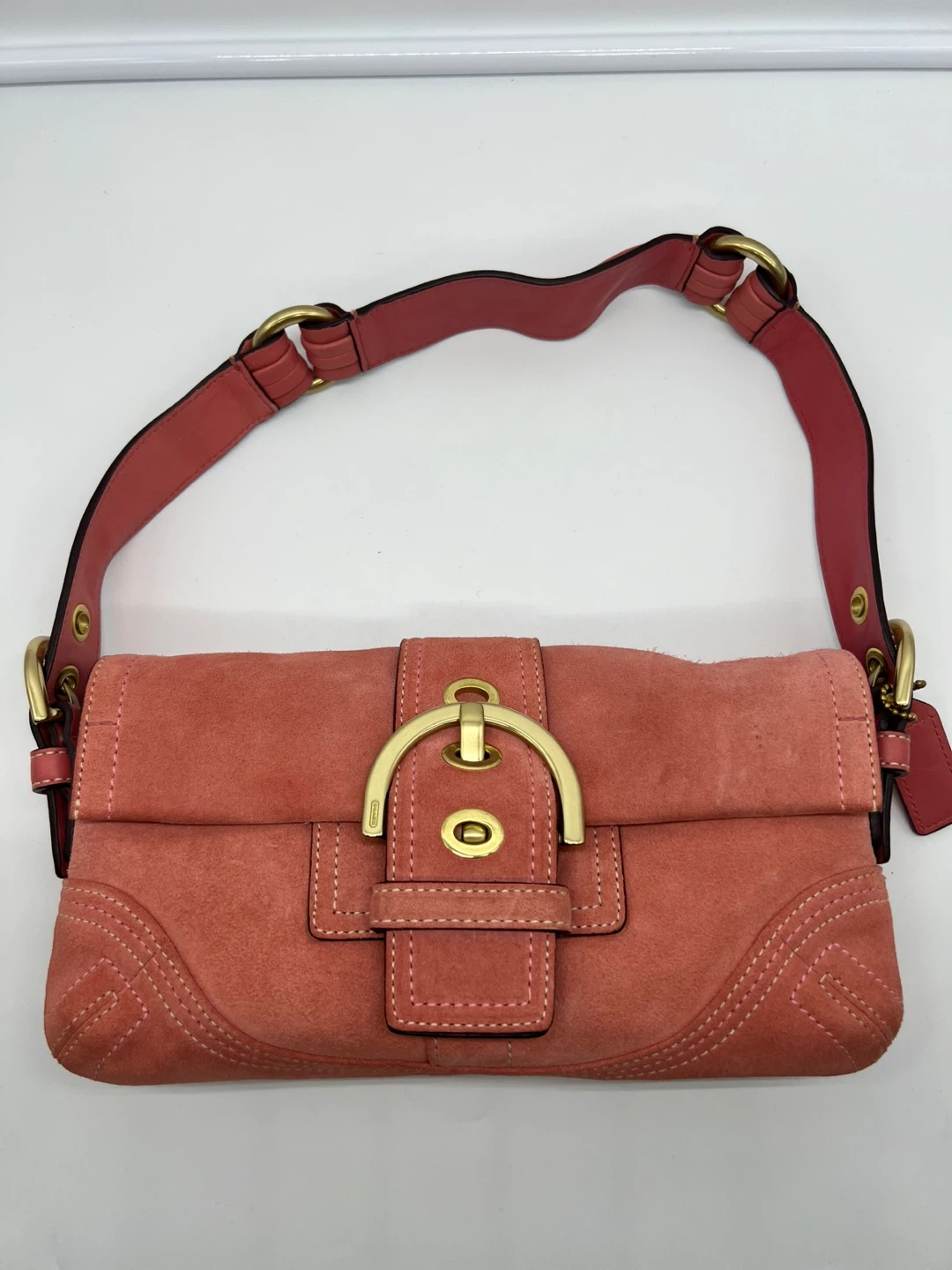 COACH VINTAGE Y2K Soho Demi Flap Salmon Suede Baguette