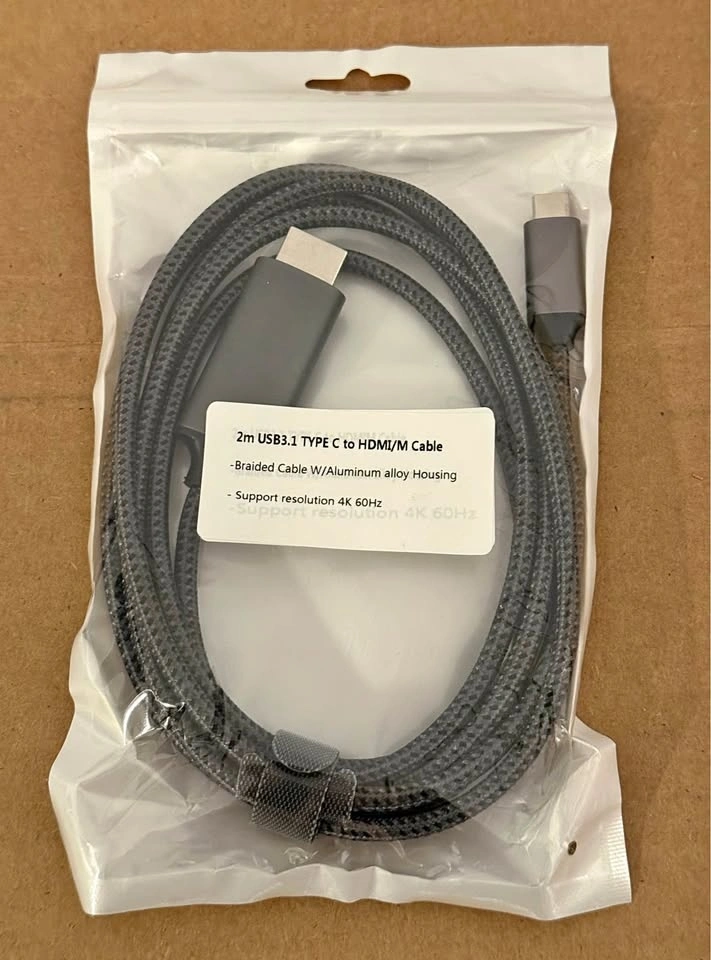 Selling a brand new, unused 2m (6.6ft) USB-C to HDMI cable. This is a high-quality cable featuring a durable braided nylon jacket and premium aluminum alloy housing for better heat dissipation and longevity.