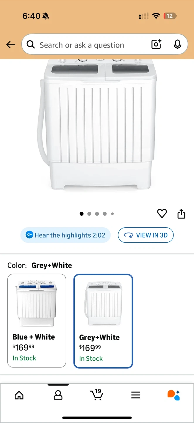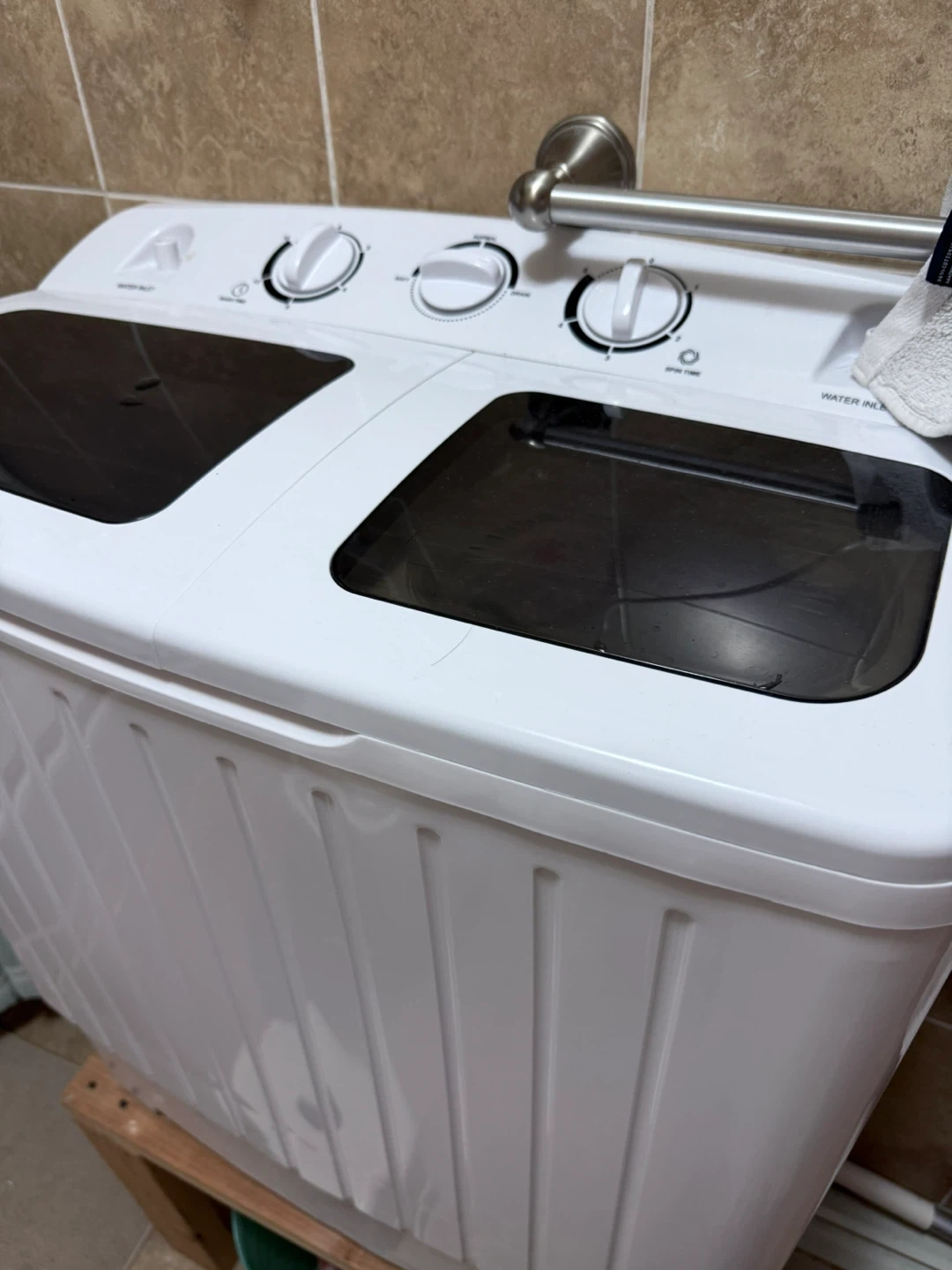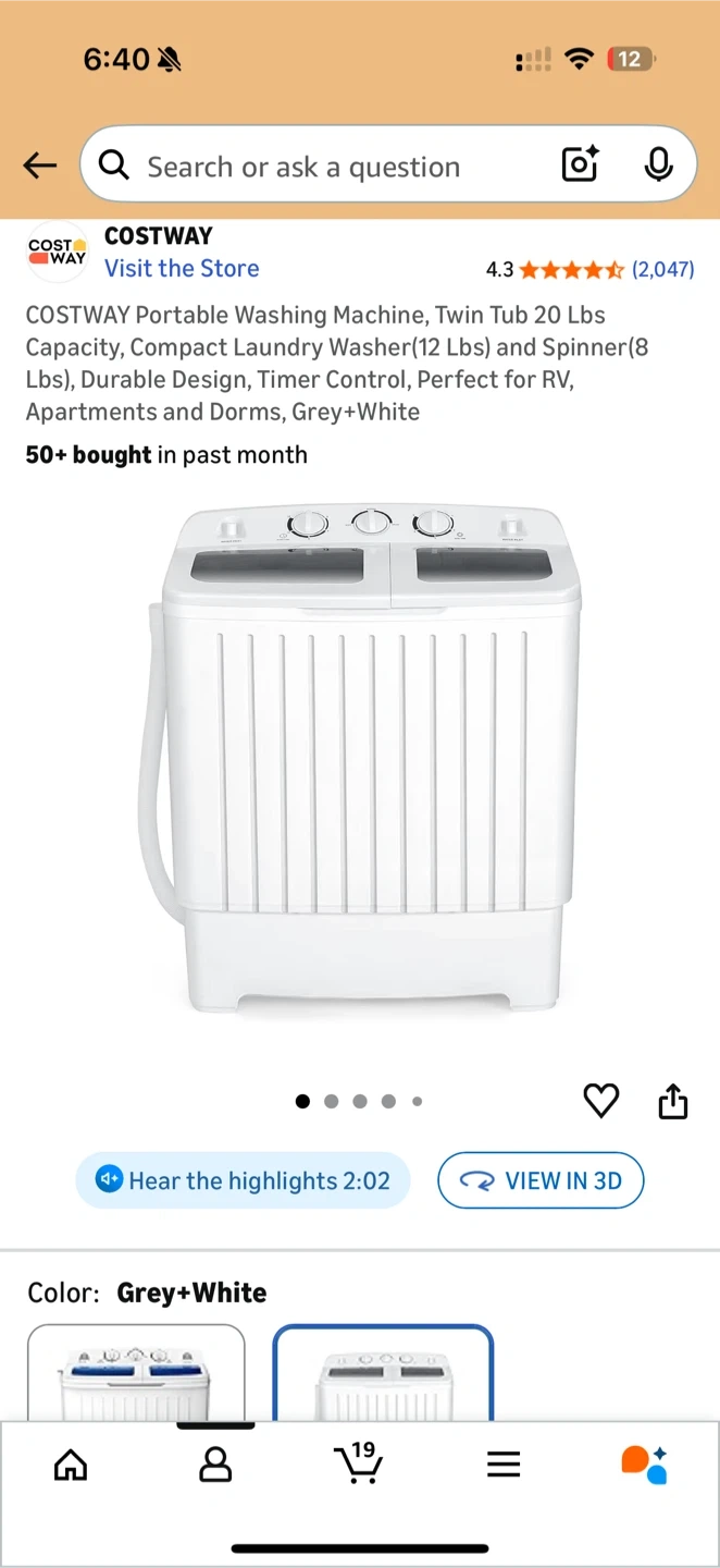 Selling a COSTWAY portable washing machine in grey and white. It's a twin tub model with a 20 lbs capacity. Perfect for apartments, RVs, and dorms!