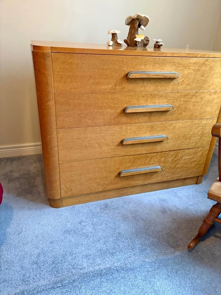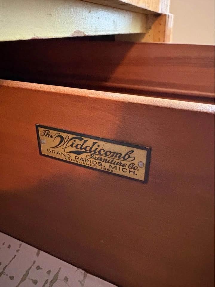 • Widdicomb 5-Drawer Tallboy Dresser: Excellent storage with beautiful grain matching. Measures 48” high 34” wide 19”deep