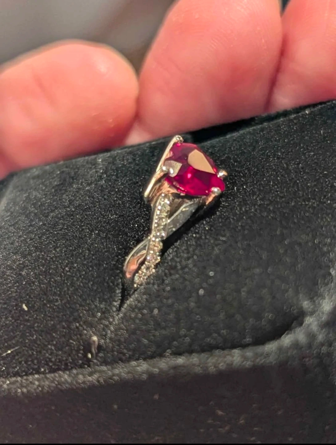 A beautiful ring featuring a heart-shaped ruby. It's a custom design by Steve Marshman, perfect for adding a touch of elegance to any outfit. Paid $1500 for it...worn few times and kept in ring box.