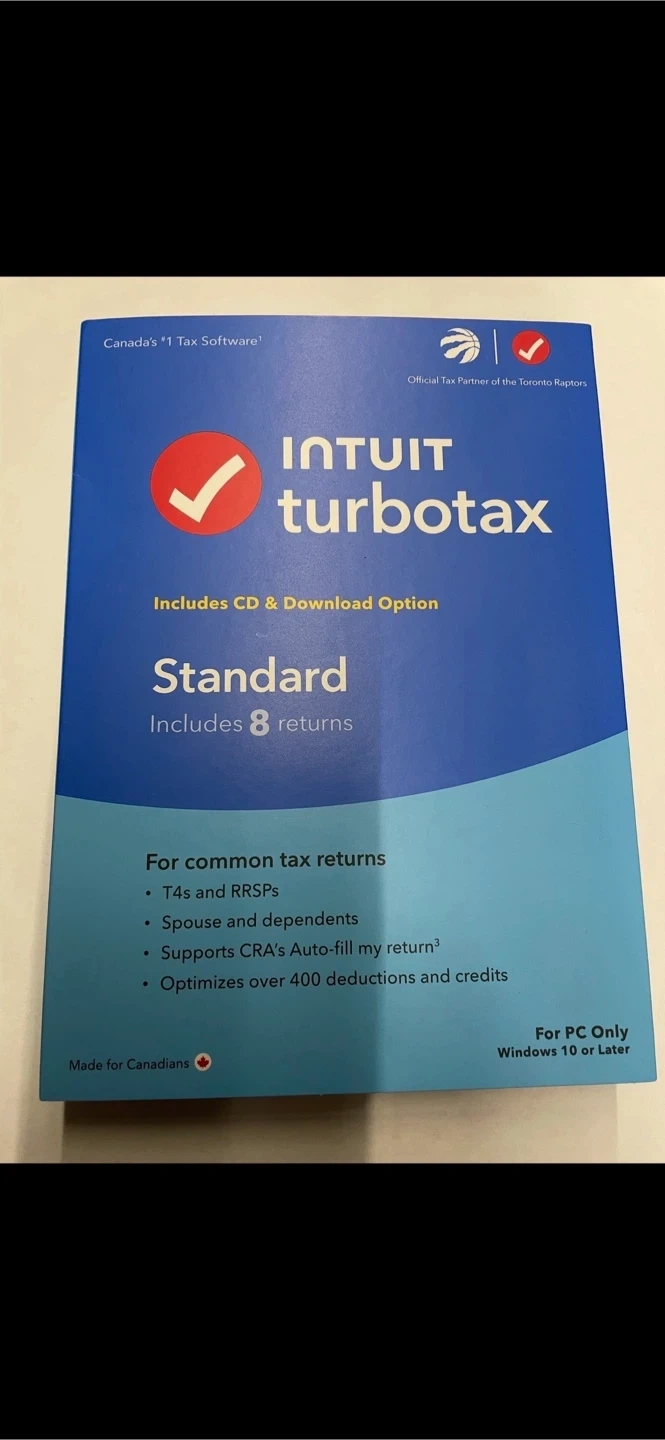 Selling Intuit TurboTax Standard, Canada's #1 tax software! Just the download option, and supports 8 returns. Great for common tax returns like T4s and RRSPs. It also supports CRA's Auto-fill my return and optimizes over 400 deductions and credits