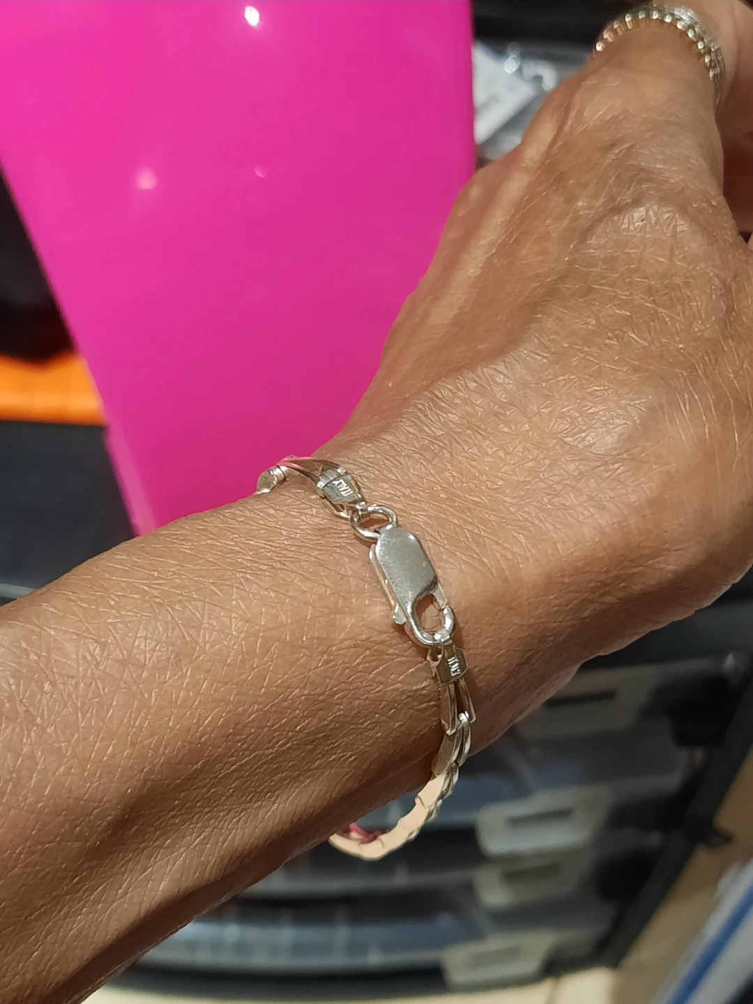 Chunky and Hefty, but still comfy. 7 25" authentic genuine solid sterling silver. Huge lobster claw clasp