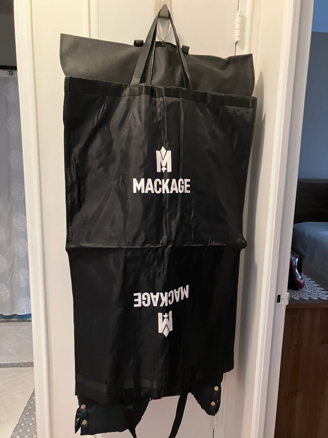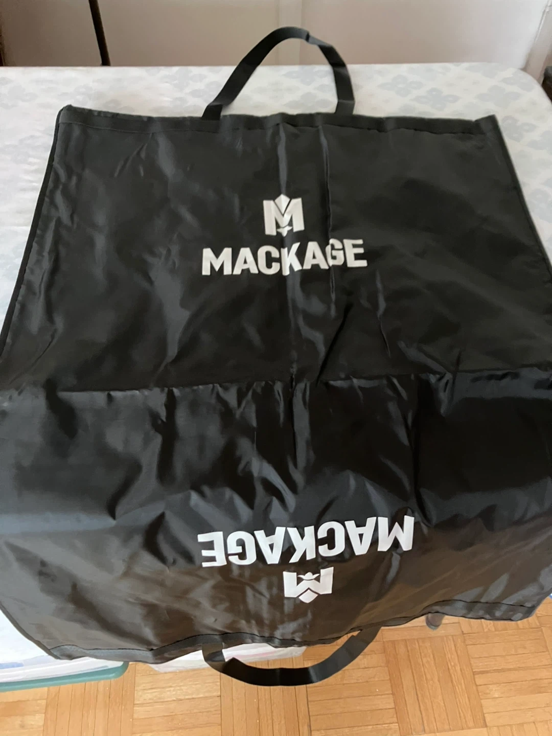 Selling a Mackage garment bag. It's in great condition and perfect for storing or transporting your favourite coats and jackets. Comes from a smoke-free home