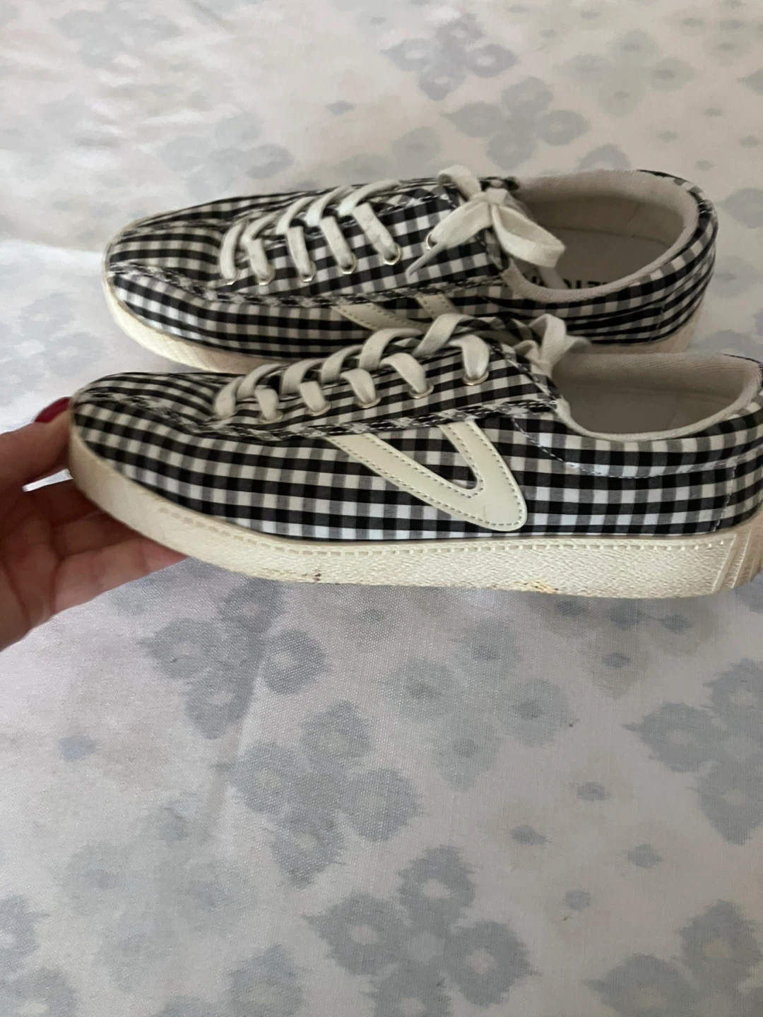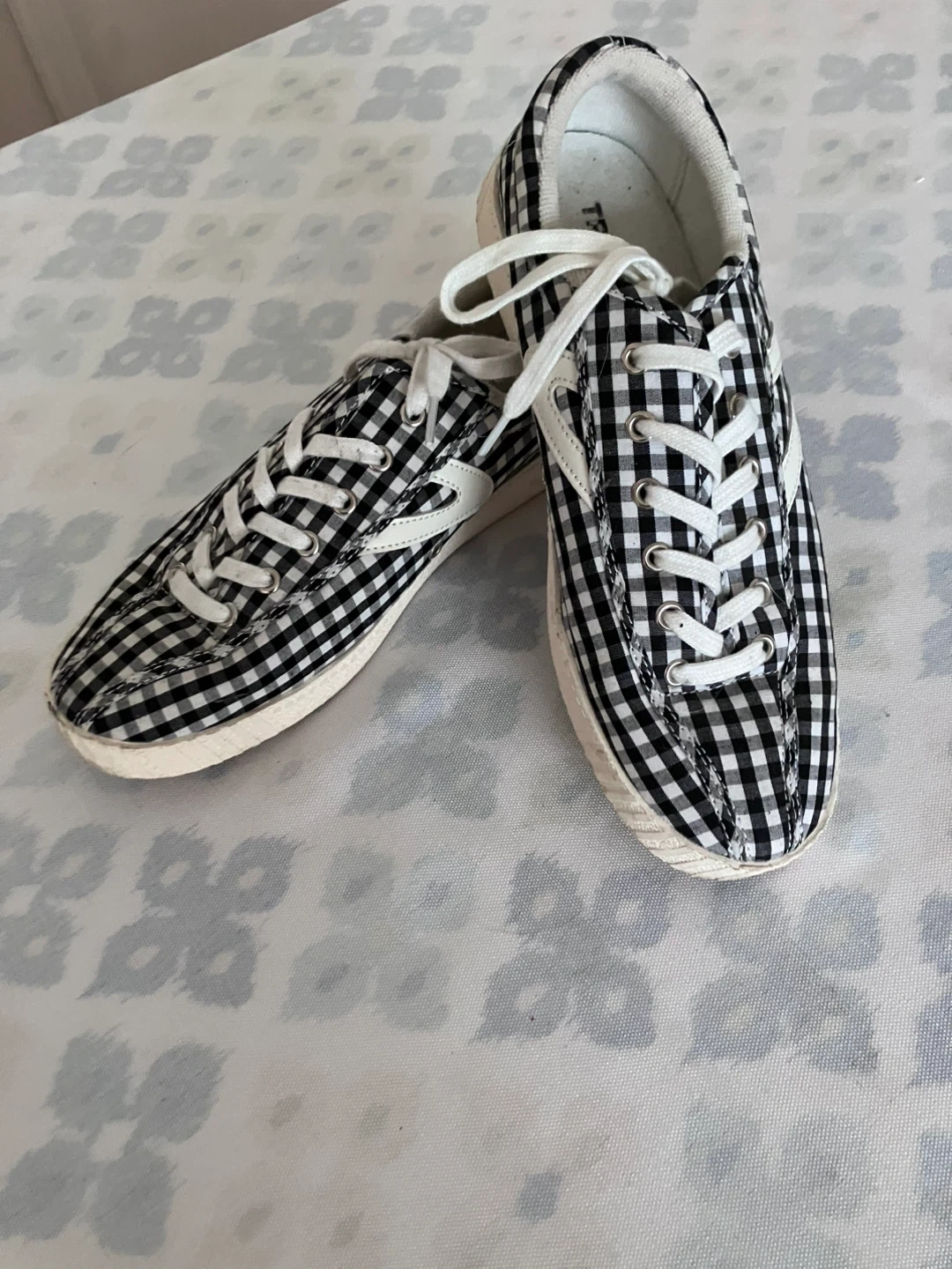 Cute Tretorn sneakers with a black and white gingham pattern! They are a US size 8. The soles have the Tretorn logo on them. Perfect for adding a touch of fun to your everyday look