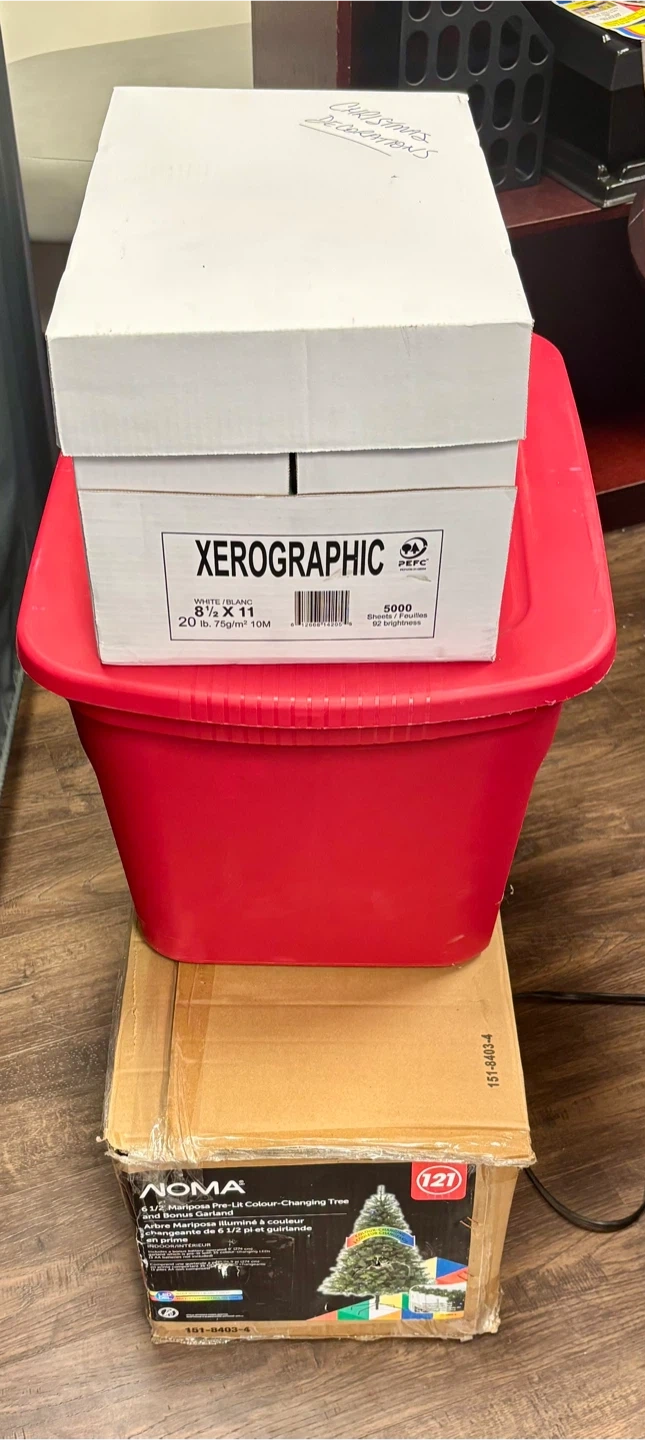 Selling a NOMA 4.5' Colour-Changing Tree. It's in its original box and ready to brighten up your space this holiday season! Comes with box of decorations and plenty of bulbs. When tree is decorated it looks like this.