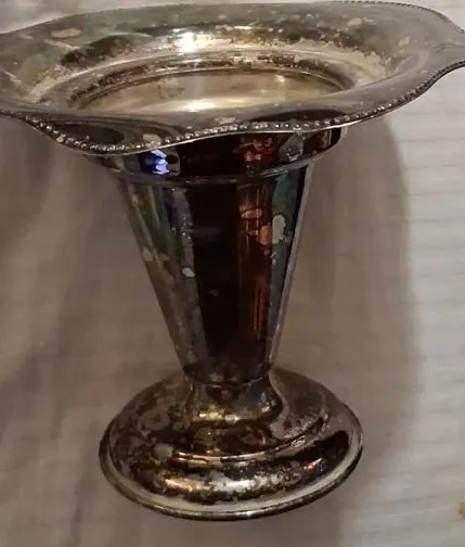 Selling a vintage silver plated vase. It has some signs of wear and tarnish, as shown in the photos. It could be polished up nicely!