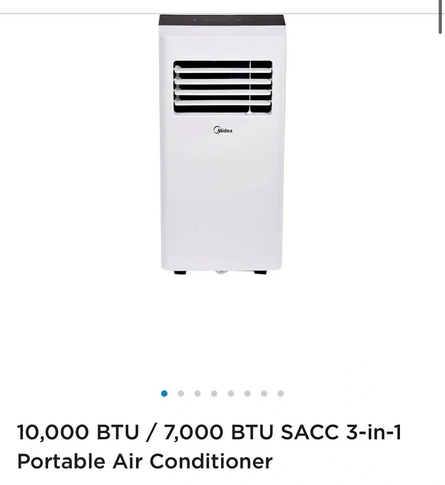 Buy & SellMidea 10,000 BTU 3-in-1 Portable Air ConditionerMidea 10,000 BTU 3-in-1 Portable Air Conditioner$200New in open box. Feel free to message if you have any questions!WHERE TO MEETCheck LocationView MapSELLERVioletWoodbridge N150 reviews0 chats·0 favorites·2 viewsSEND CHAT TO SELLERHi Violet! I’m interested in your listing.Hi Violet! I’m interested in your listing.Get the Karrot app to chatSign In to chat