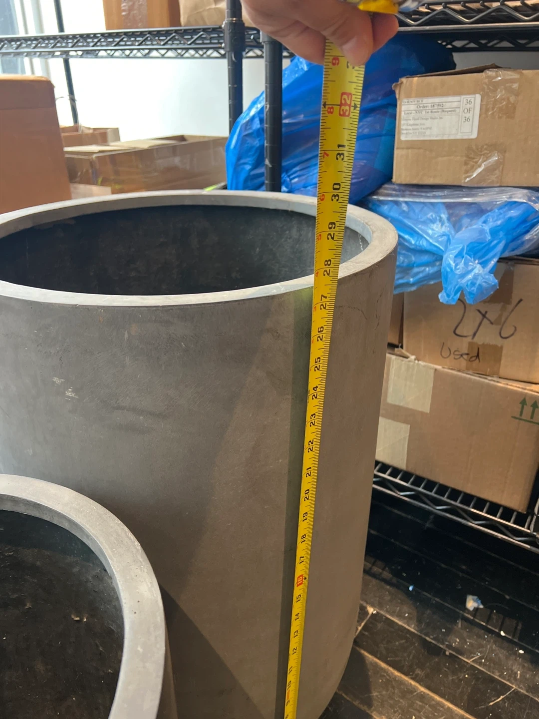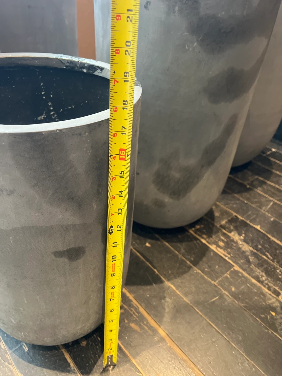 Selling a set of concrete fiberglass planters in a neutral gray color. There are various sizes available, ranging from approximately 10 to 30 inches in height. They're perfect for adding a modern touch to your indoor or outdoor space! There are 2 large, 2 medium and 1 small.